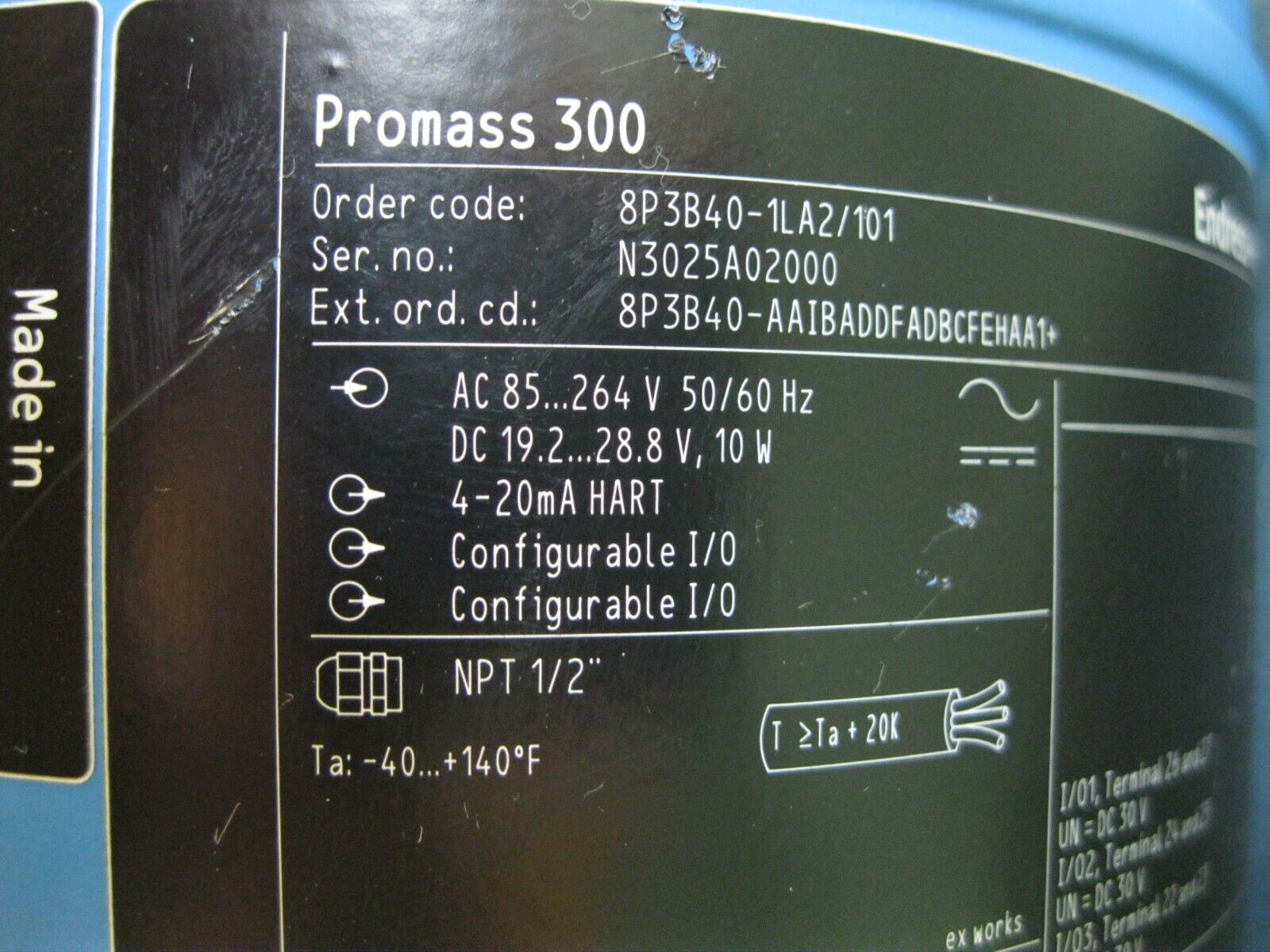 1-1/2″ Endress Hauser 8P3B40-AAIBADDFADBCFEHAA1 Promass P 300 HART Flowmeter R0