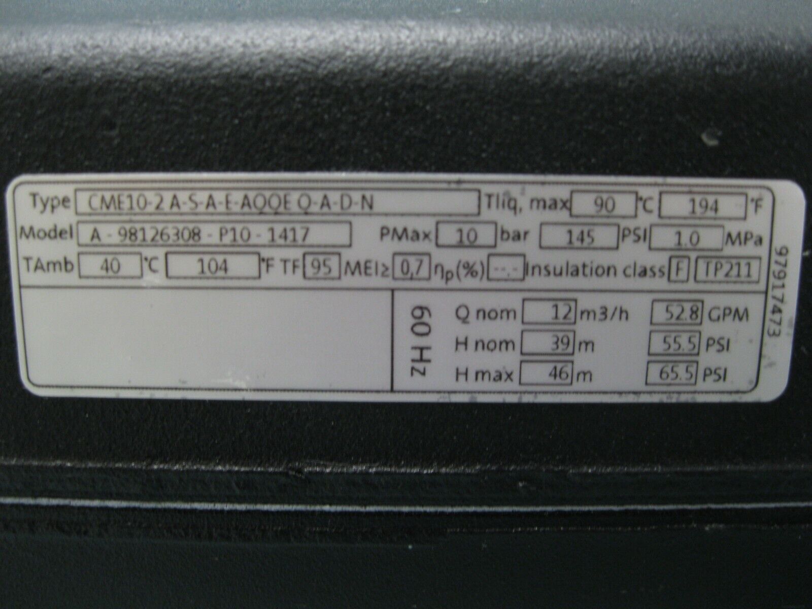 1-1/2″ NPT Grundfos CME10-2 Cast Iron End Suction Pump 3 HP Motor P21 (2930)