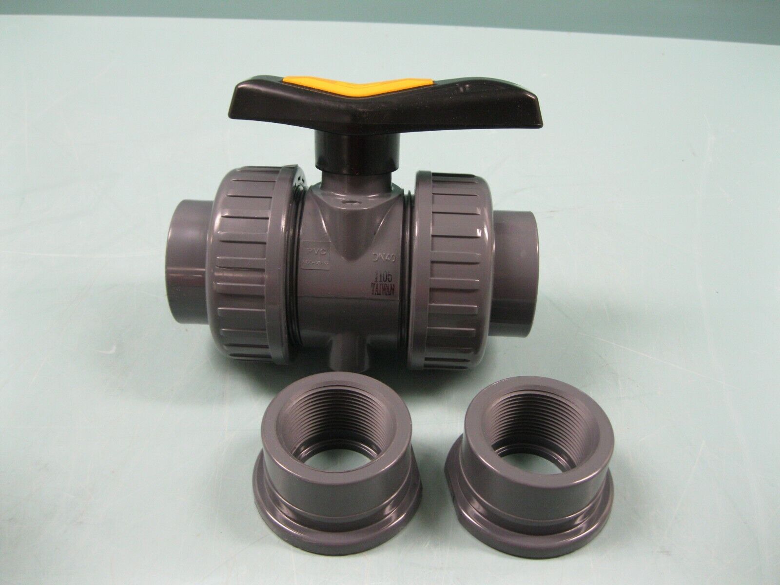 1-1/2" True Gray Union PVC Ball Valve Socket Slip Solvent/Thread NEW V2 (2492) quantity