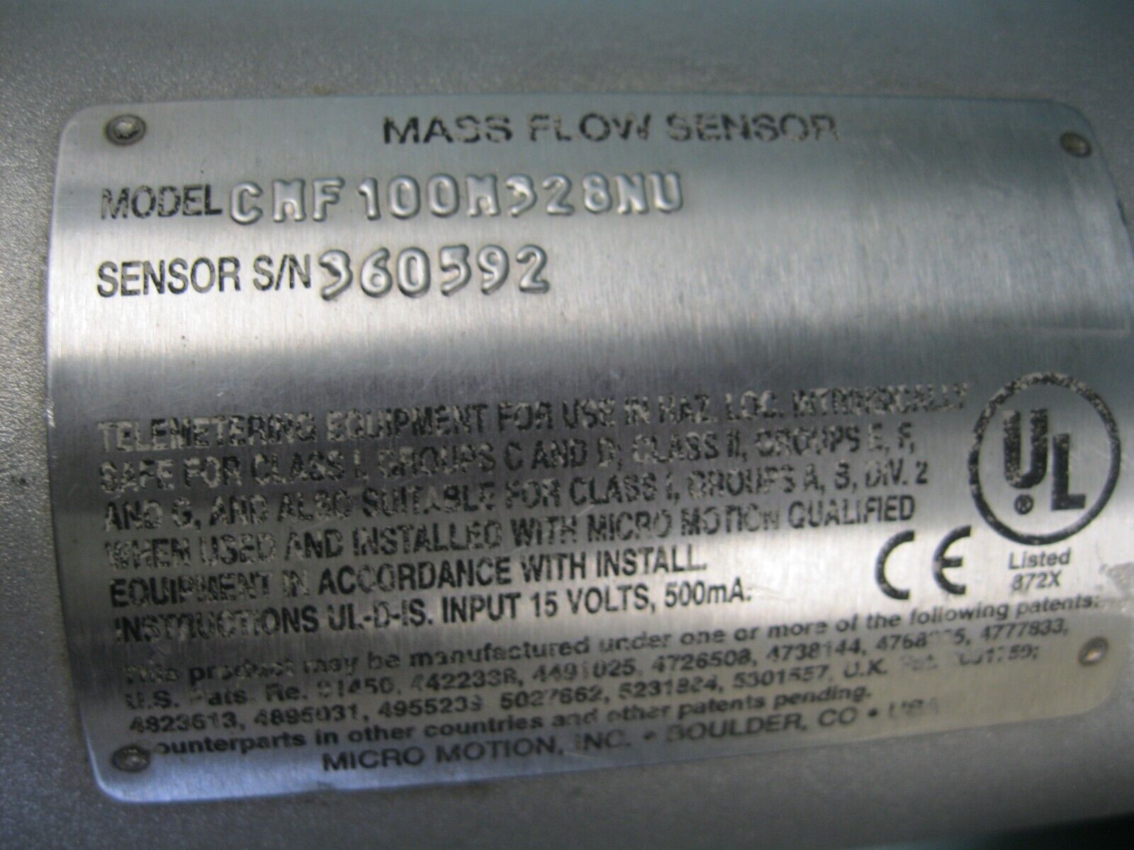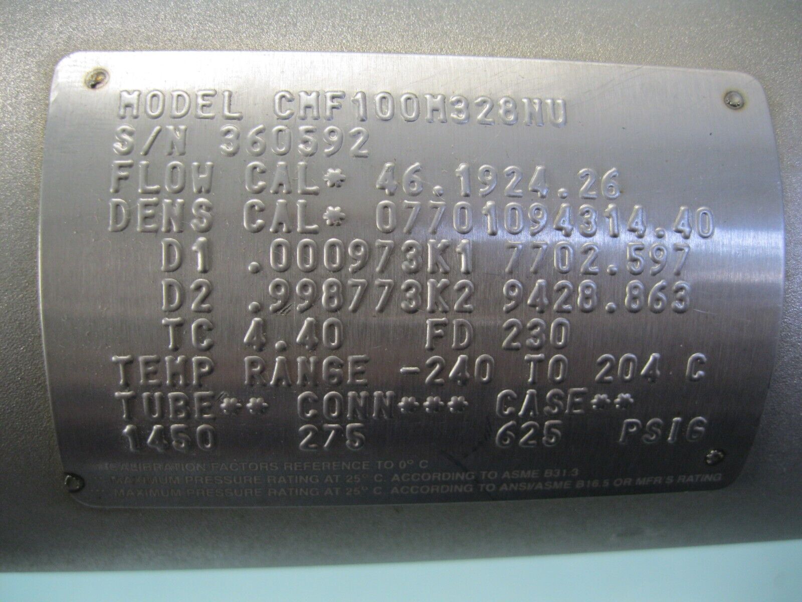 1″ 150# Micro Motion CMF100 M328NU Mass Flow Sensor CALIBRATED P22