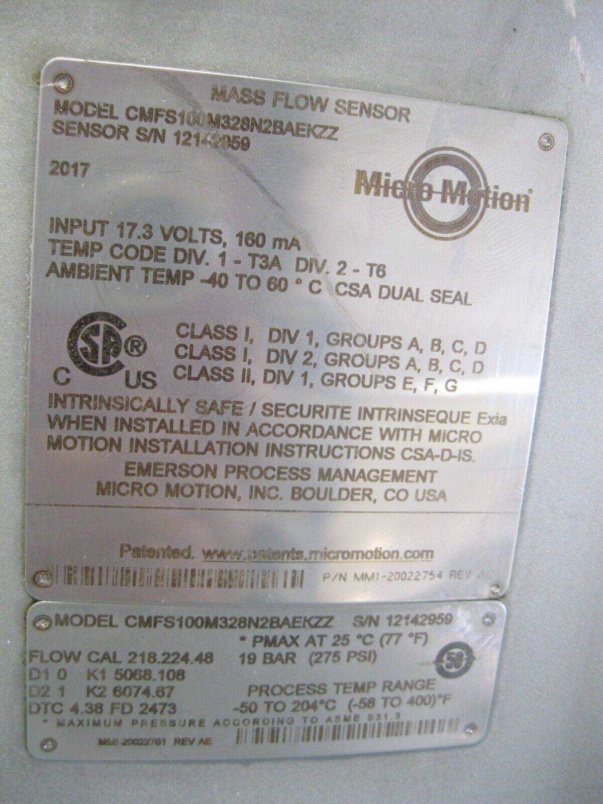 1″ 150# Micro Motion CMFS100 Sensor 800 Enhanced Core Processor CALIBRATED A7