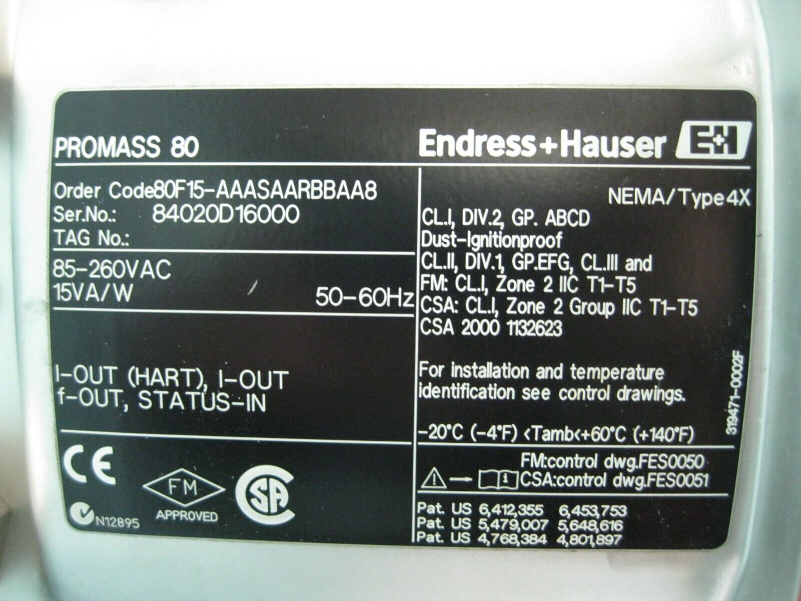 1/2″ 150# Endress Hauser 80F15-AAASAARBBAA8 Promass 80 F Flowmeter NEW G20 (3011