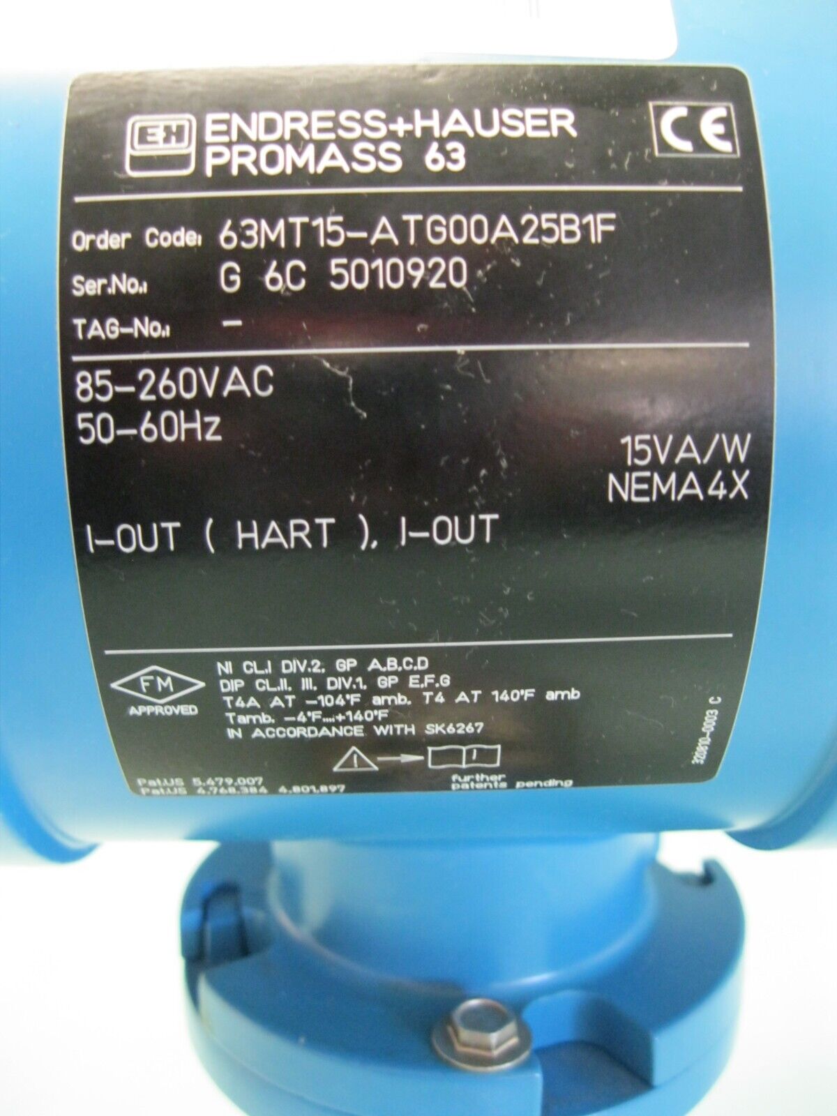 1/2″ Endress Hauser 63MT15-ATG00A25B1F Promass 63 M Flowmeter B15