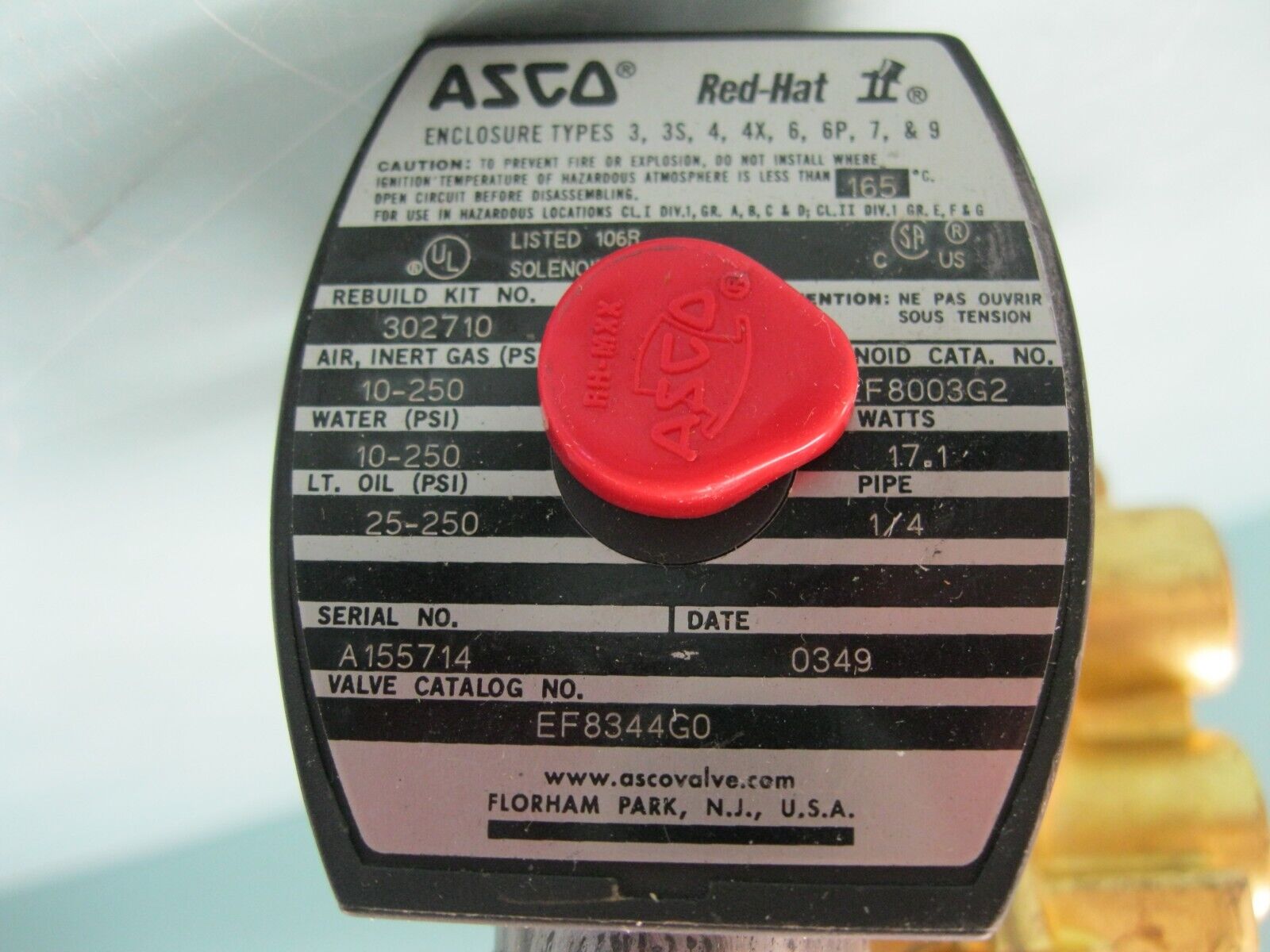 1/4″ NPT Asco Red-Hat EF8344G0 Brass 4-Way Solenoid Valve NEW P24