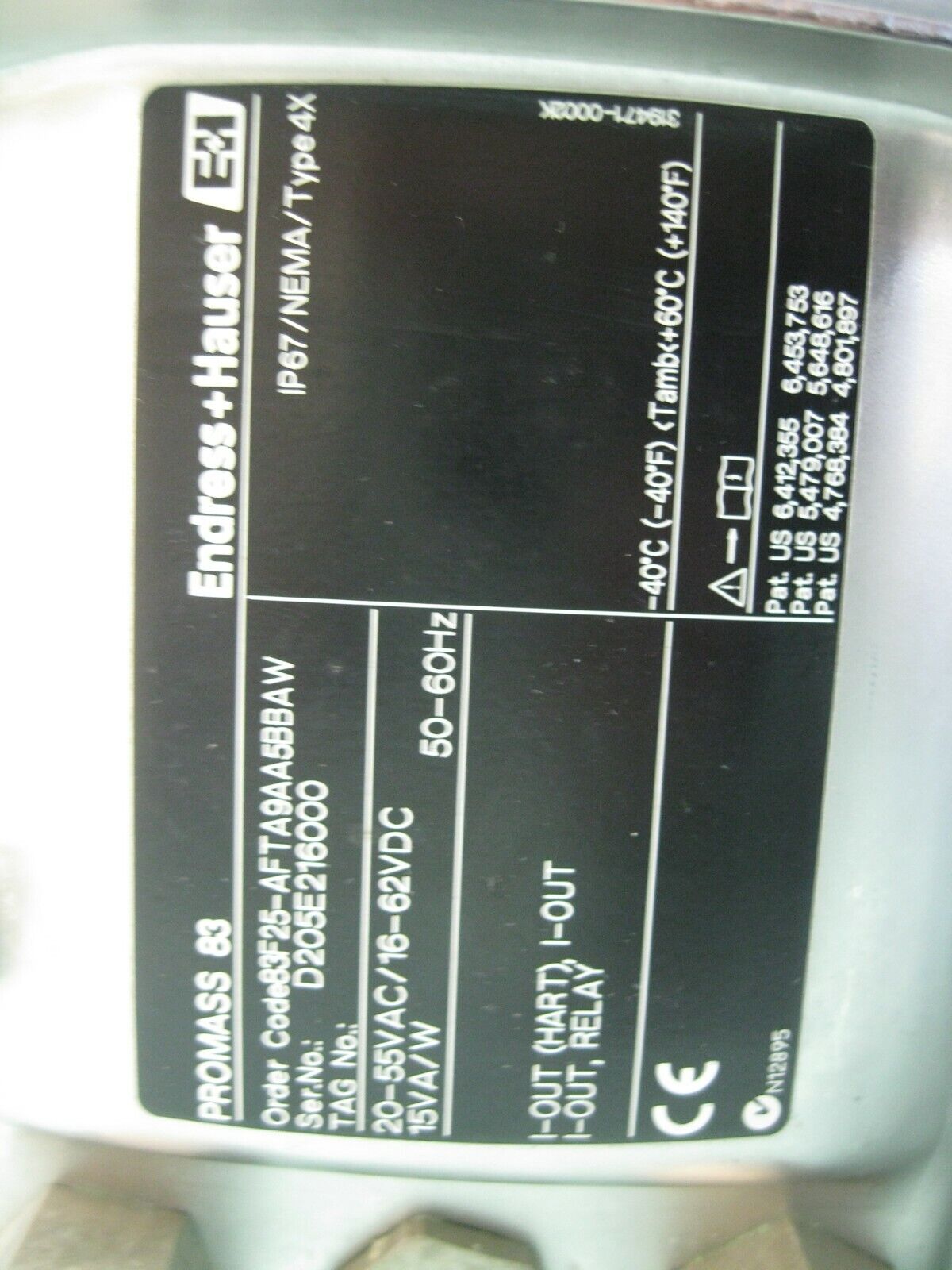 1" Endress Hauser 83F25-AFTA9AA5BBAW Promass 83 F Flowmeter FOR PARTS C12 (2715) quantity
