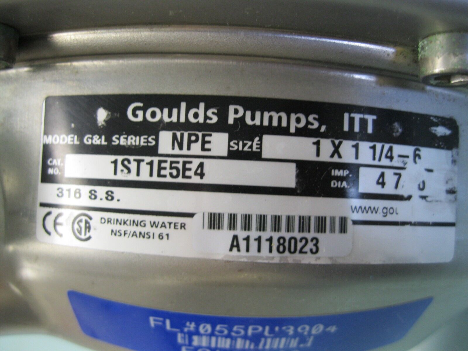 1″ x 1-1/4″ -6 Goulds 1ST1E5E4 NPE Centrifugal Pump 2 HP Motor D5