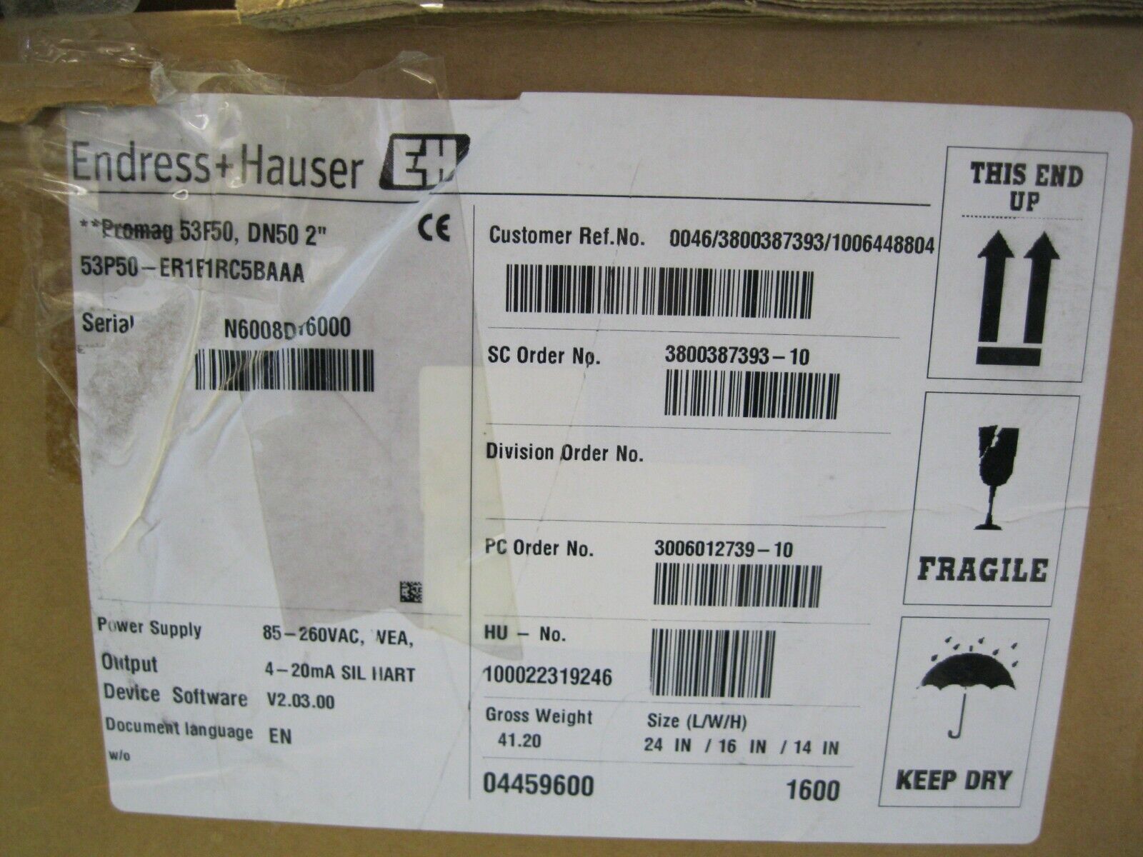 2″ 150# Endress Hauser 53P50-ER1B1RC5BAAA Promag 53 P Flowmeter NEW E10