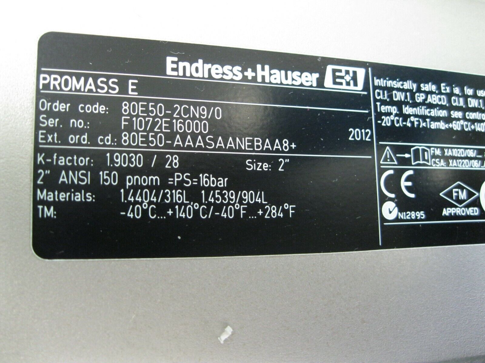 2″ 150# Endress Hauser 80E50-AAASAANEBAA8 Promass 80 E Flowmeter NEW B3 (3010)