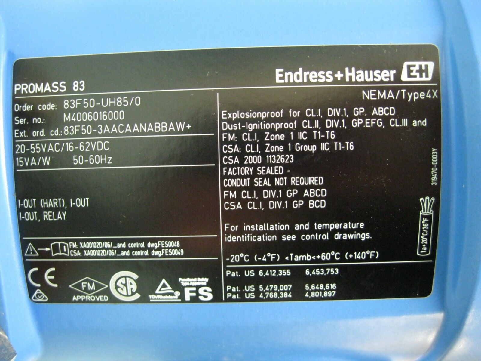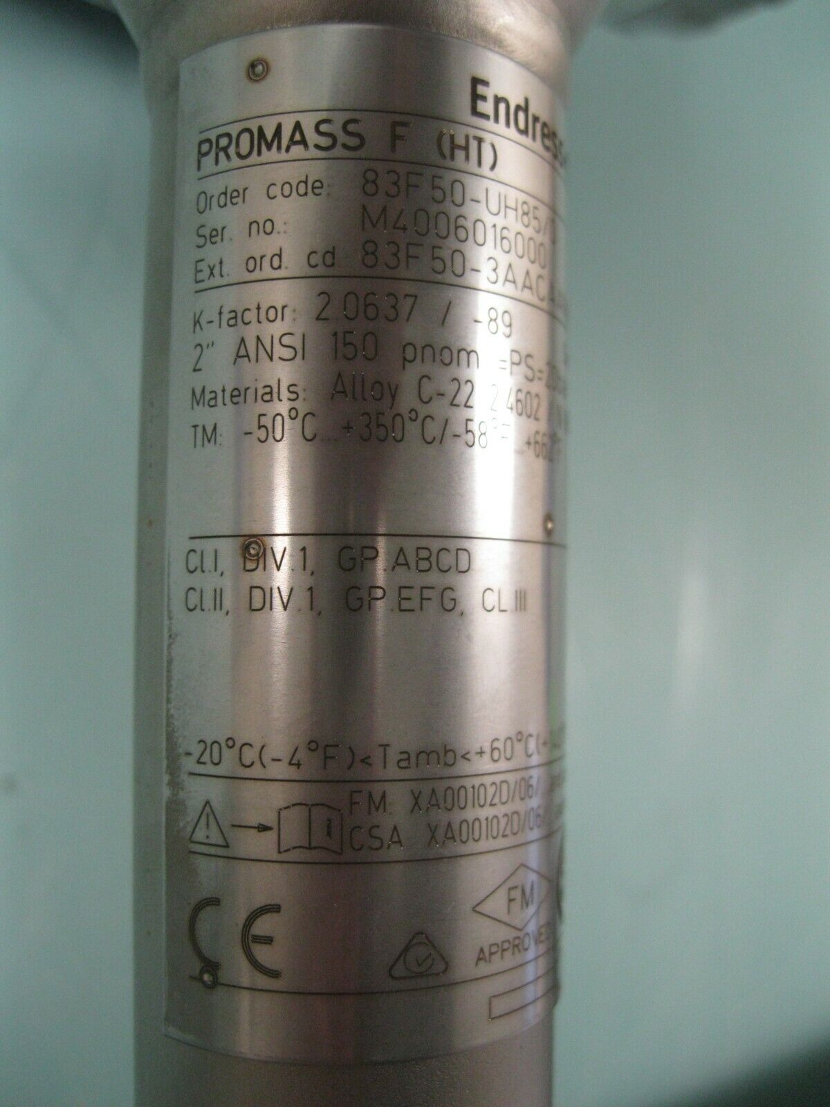 2″ 150# Endress Hauser 83F50-3AACAANABBAW+ Promass 83 F Flowmeter NEW P6