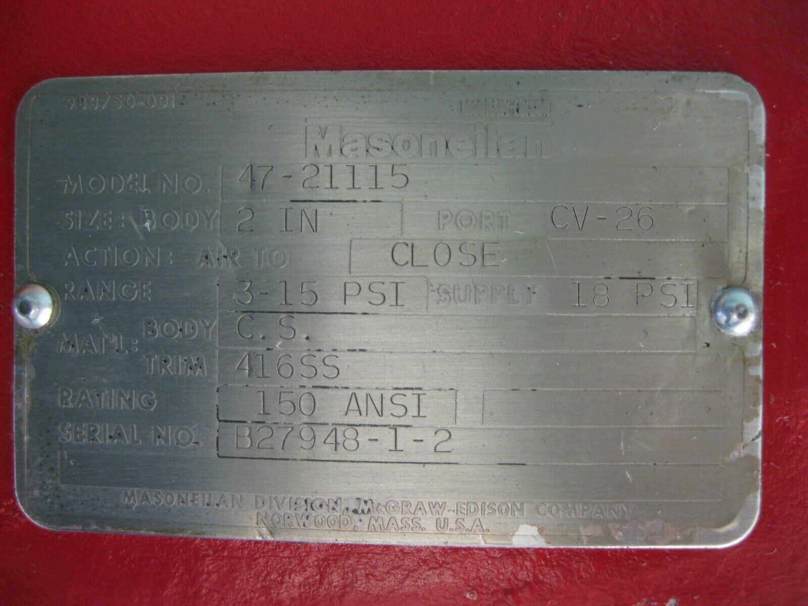 2″ 150# Masoneilan 47-21115 Series 21000 CS Control Valve P26 (2562)