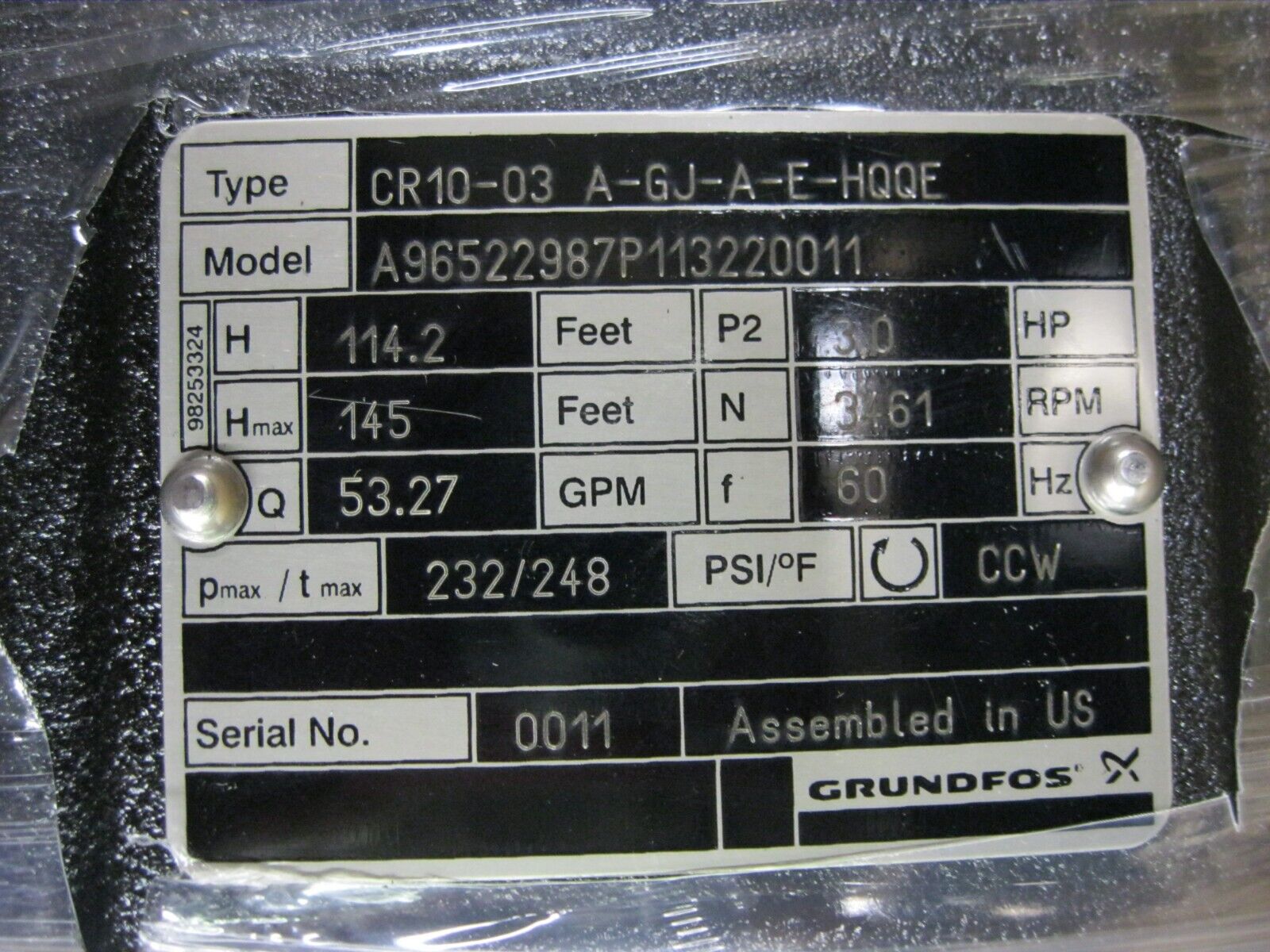 2" Grundfos CR10-03 Centrifugal Pump 3 HP Motor NEW Z52 quantity