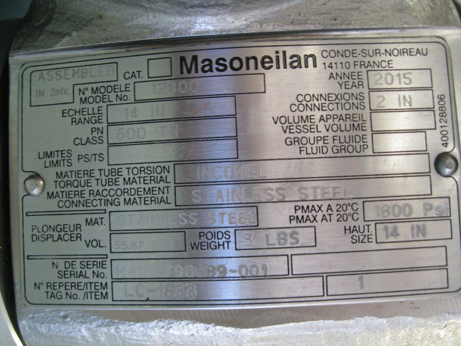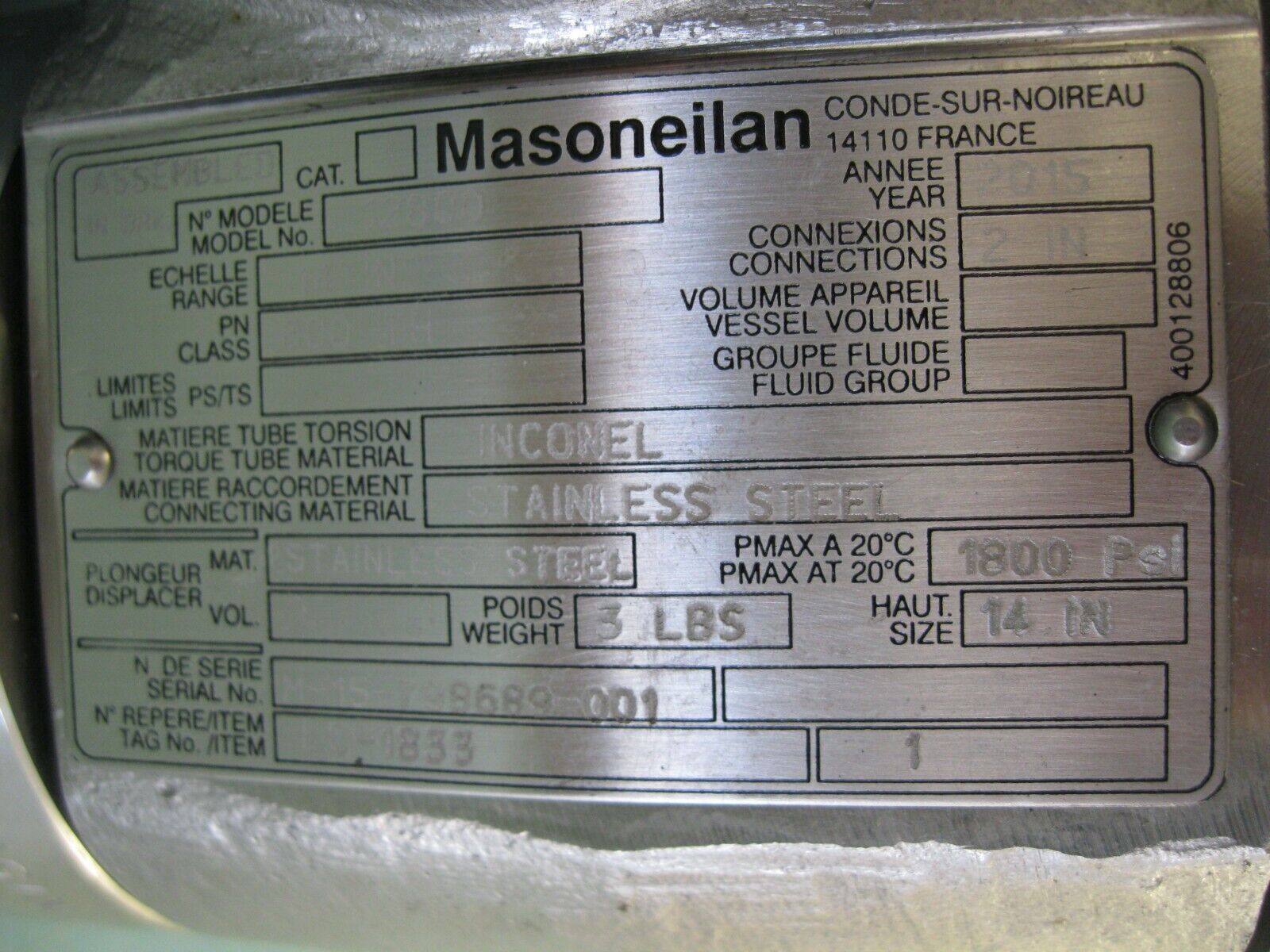 2″ Masoneilan 12800 14″ Pneumatic Level Controller P6 (3009)