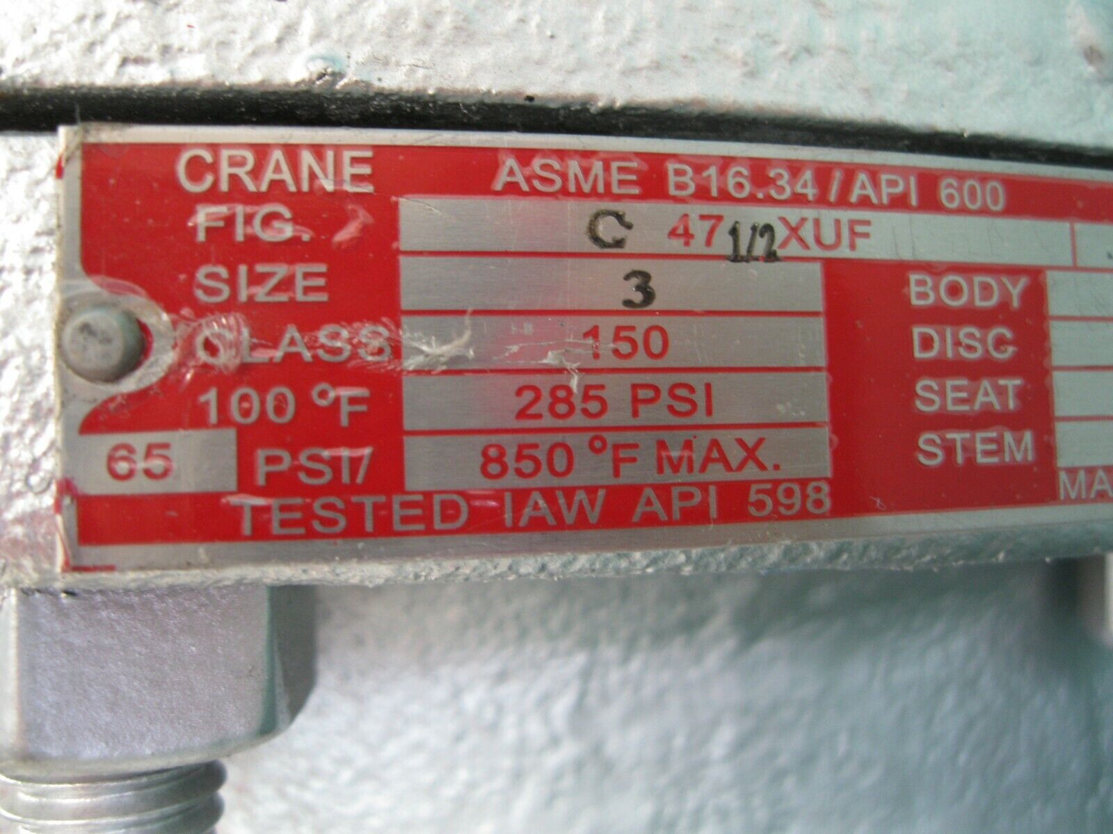 3" 150# Crane Butt Weld WCB C 47 1/2 XUF Gate Valve NEW P4 (2867) quantity