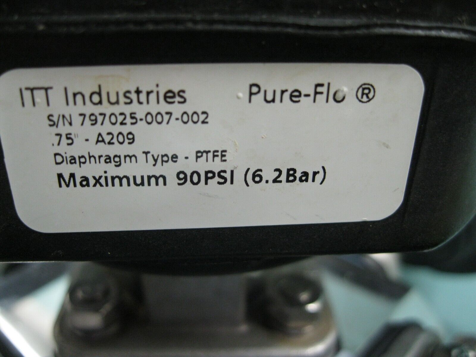3/4″ ITT Pure-Flo SS Sanitary Diaphragm Valve Assembly Advantage Actuator H9