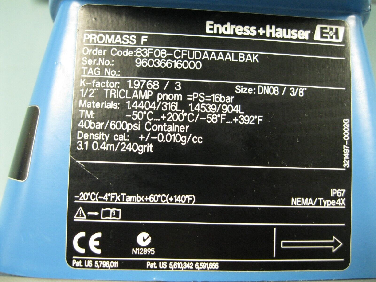 3/8″ Endress Hauser 83F08-CFUDAAAALBAK Sanitary Promass 83 F Flowmeter A19