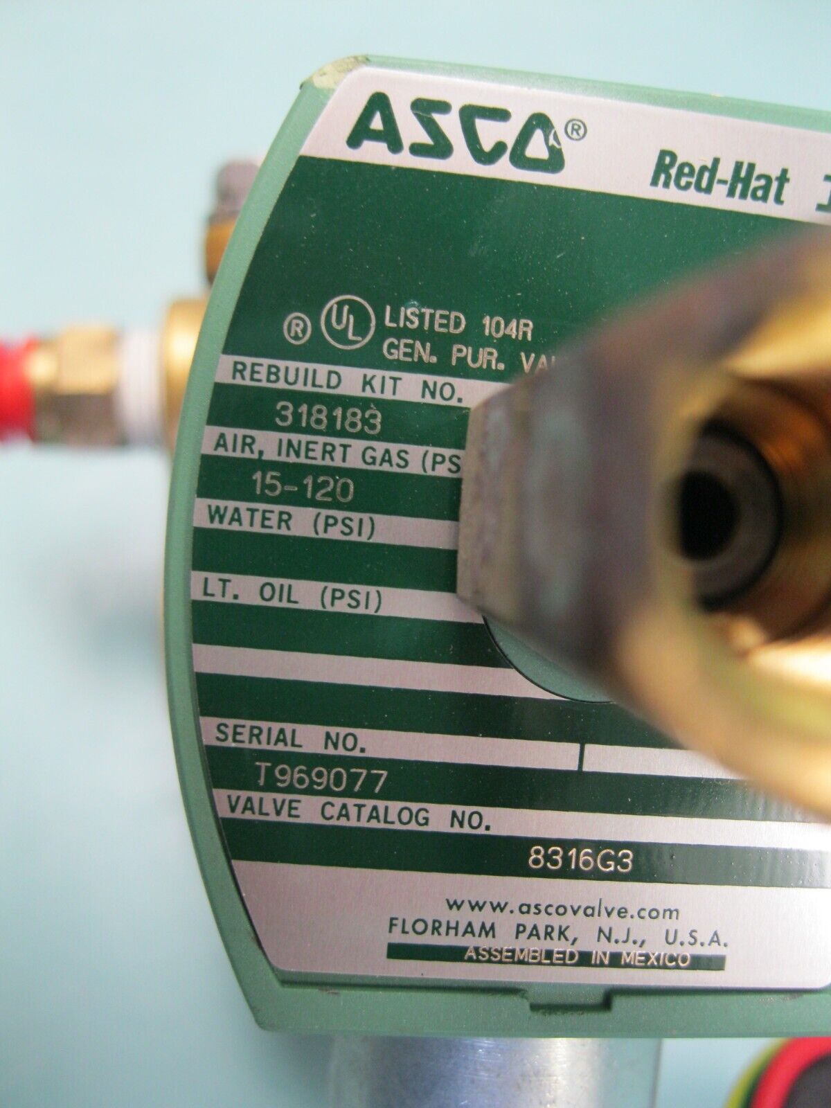3/8″ NPT Asco Red-Hat II 8316G3 Brass Solenoid Valve F18