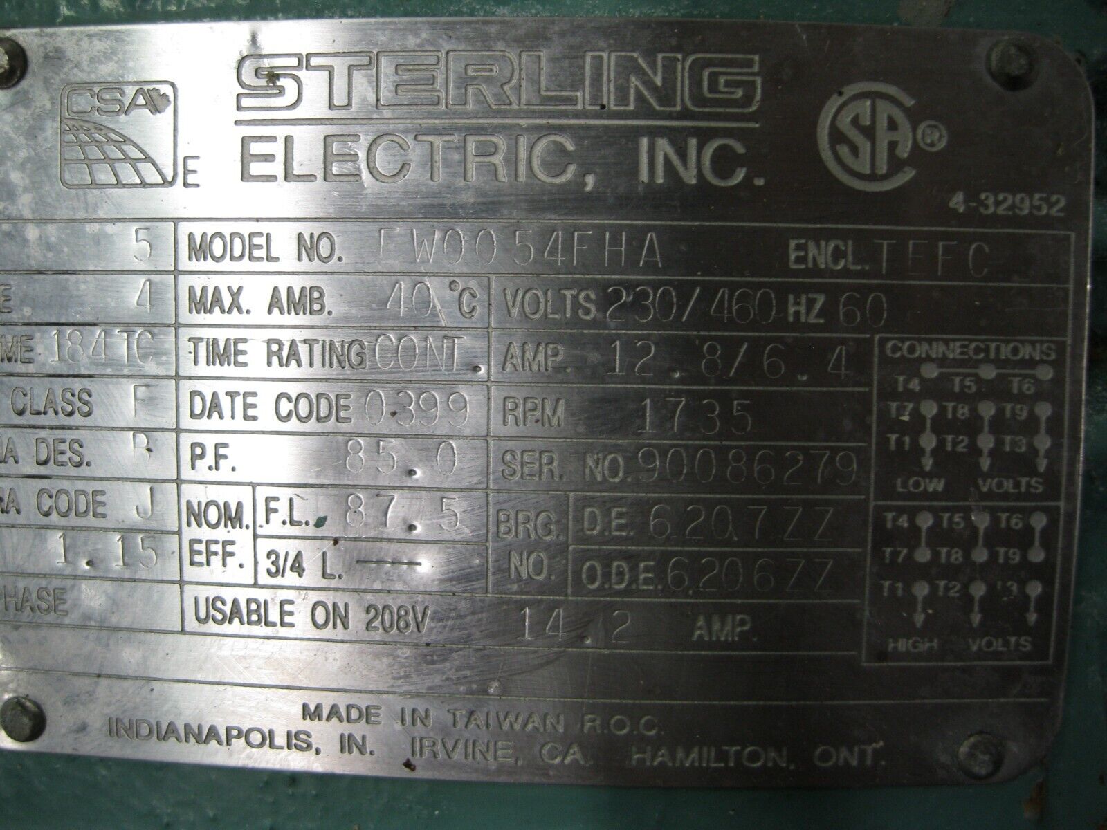 3″ x 2″ Tri-Clover Sanitary Centrifugal Pump Sterling Electric 5 HP Motor Z45