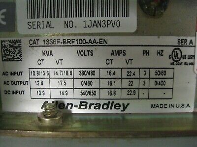 Allen-Bradley 1336F-BRF100 Adjustable Frequency 10 HP AC Drive A16 quantity