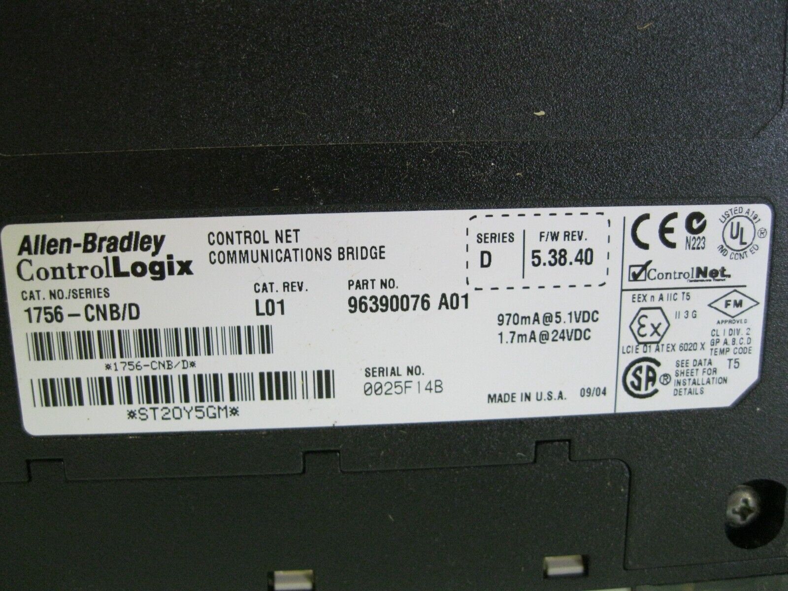 Allen-Bradley 1756-CNB Ser D Control Net Communications Bridge NEW A14