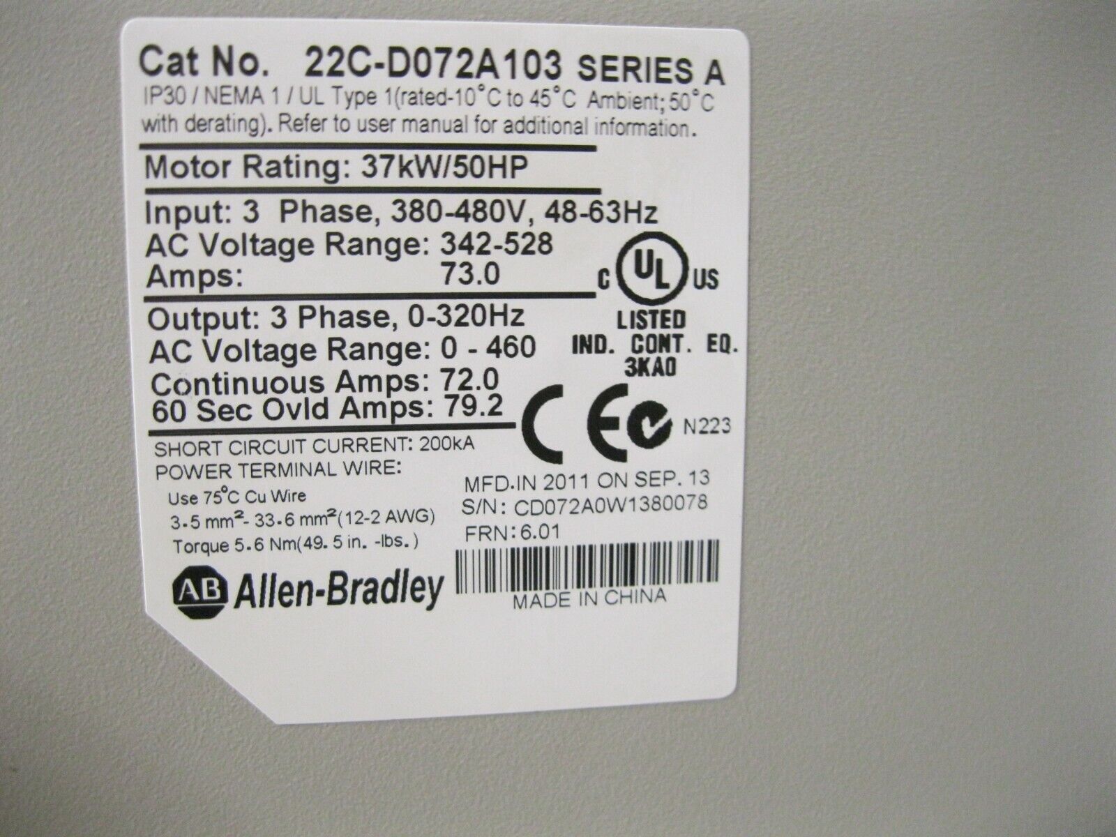 Allen-Bradley 22C-D072A103 Ser A Powerflex 400 AC Drive 50 HP Z14 quantity