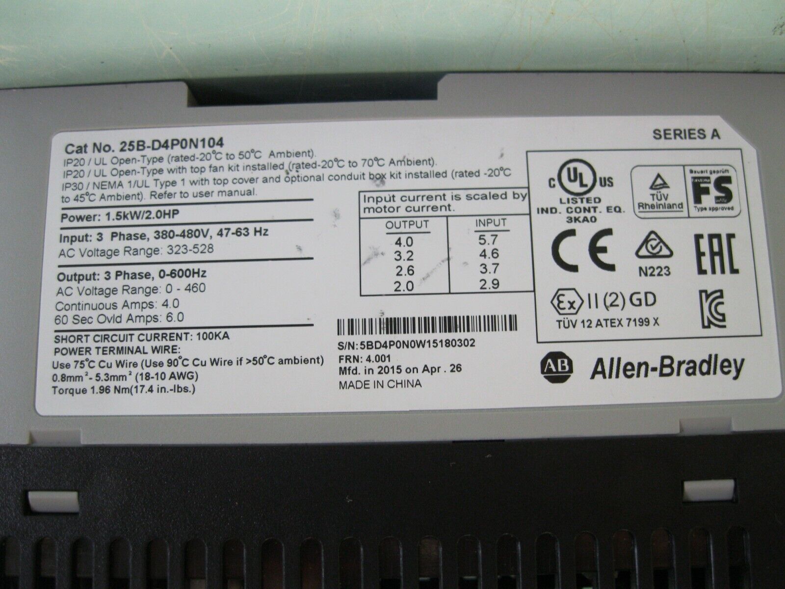 Allen-Bradley 25B-D4P0N104 Ser A Powerflex 525 2 HP AC Drive E13 quantity