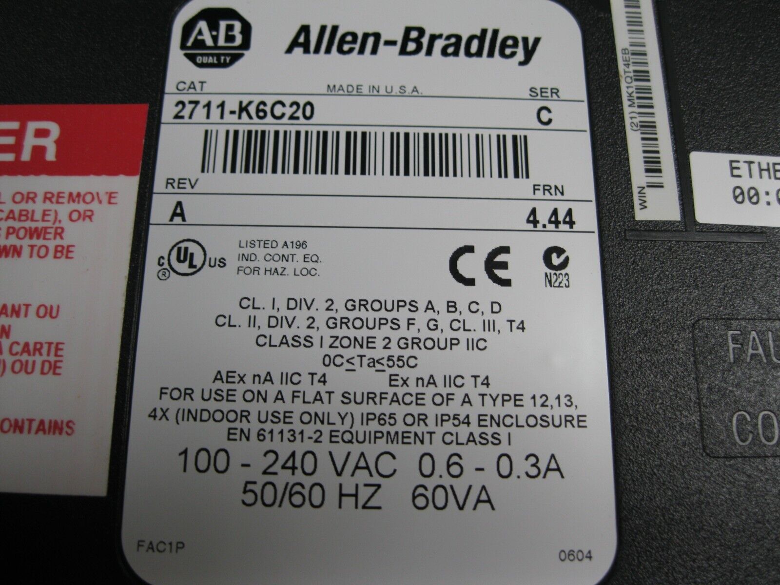 Allen-Bradley 2711-K6C20 Ser C Panelview 600 Color Terminal D19
