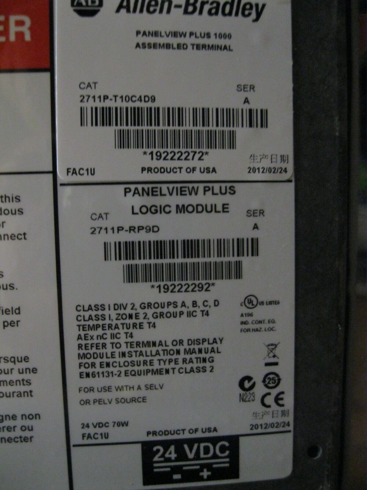 Allen-Bradley 2711P-T10C4D9 Ser A Panelview PLUS 1000 Touchscreen Color D2