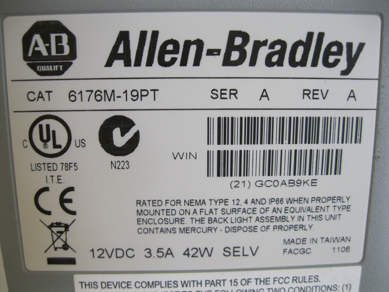 Allen-Bradley 6176M-19PT VersaView Touchscreen Monitor A1