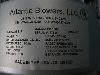 Atlantic Blowers PB 100E Sanitary Regenerative Blower .67 HP E4 (2977) quantity