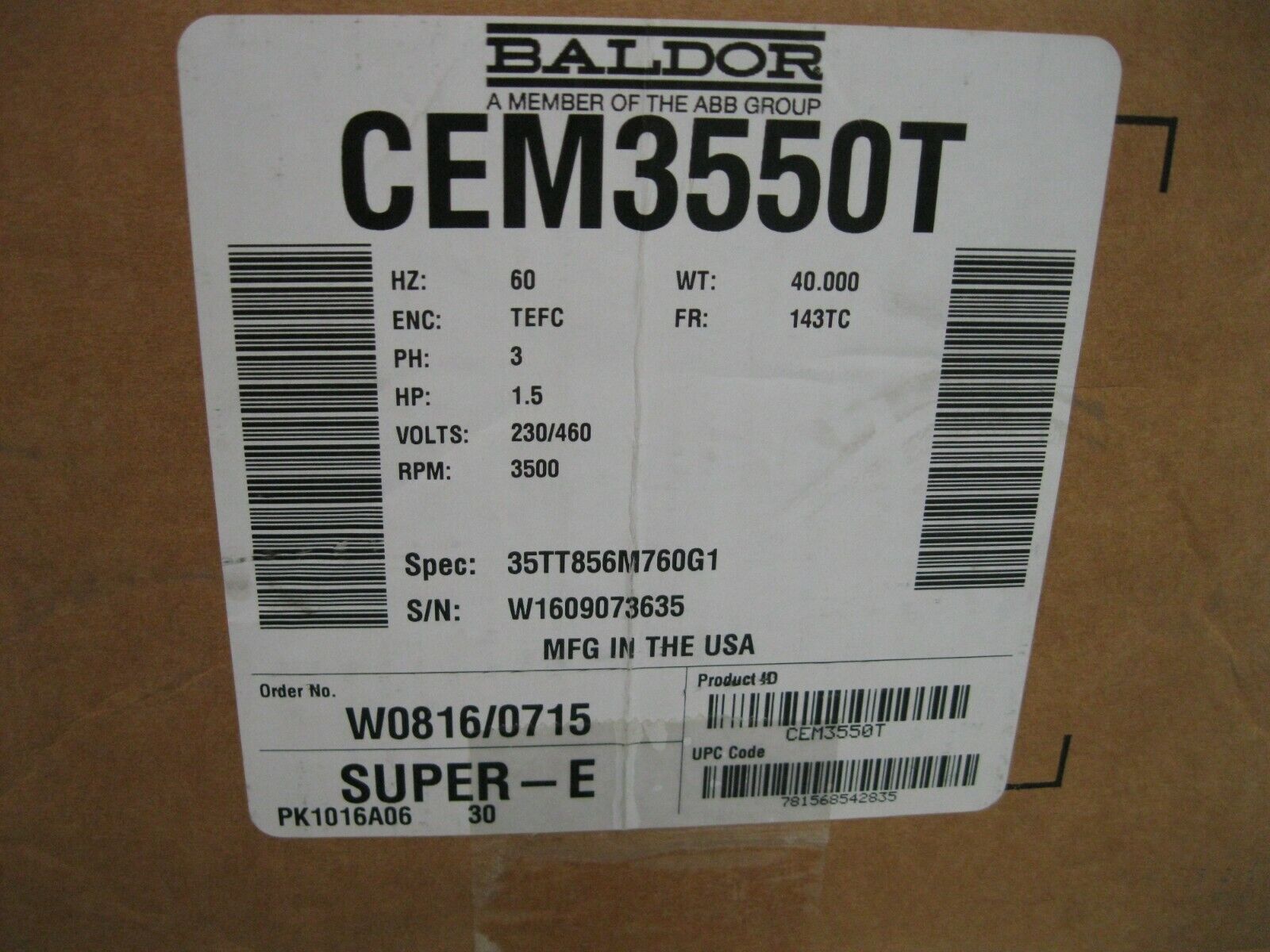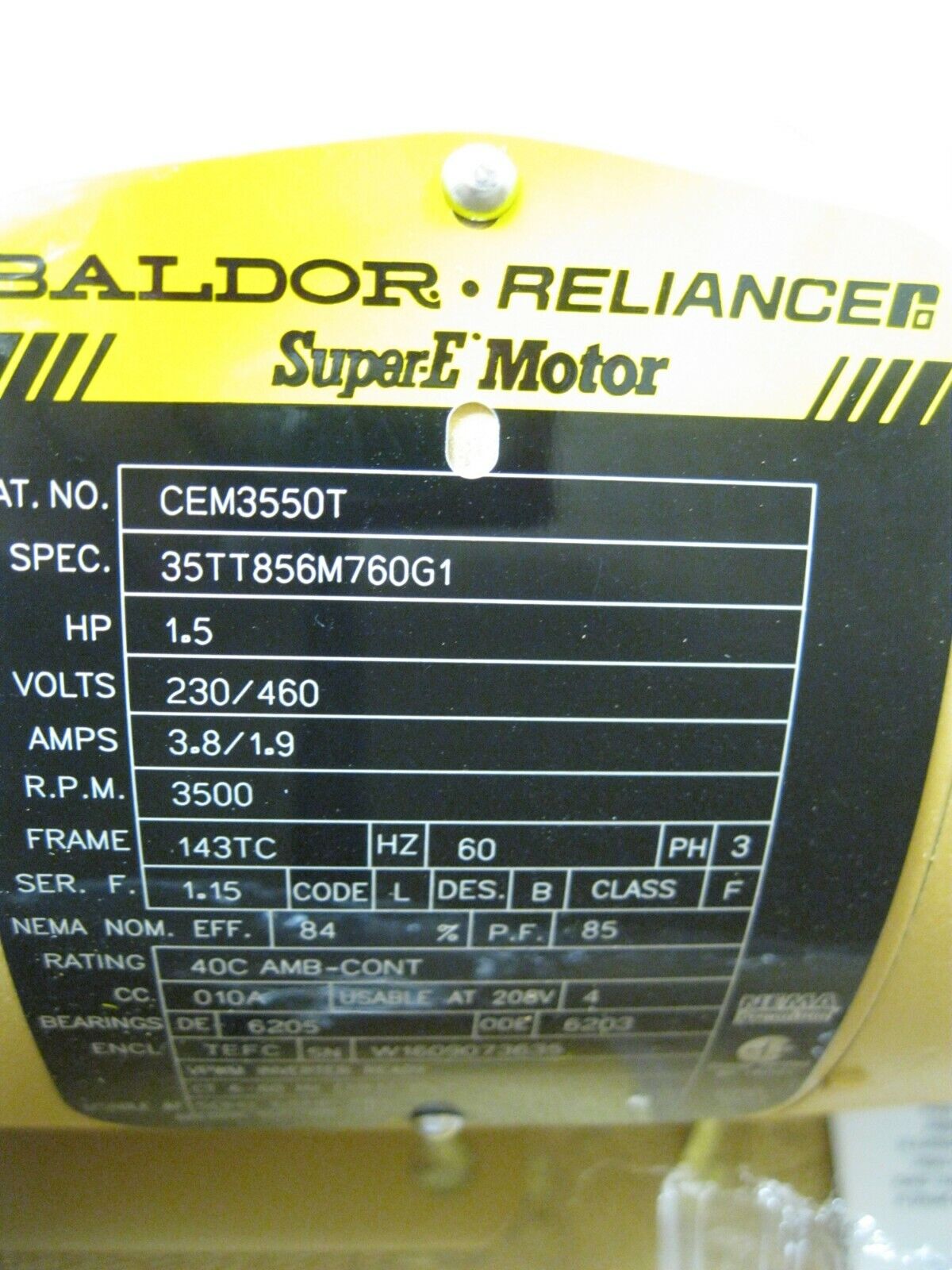 Baldor CEM3550T Super-E Motor 1.5 HP 230/460V NEW G7 (2837)