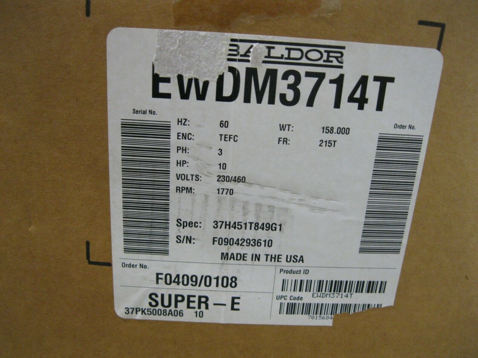 Baldor EWDM3714T Super-E Motor 10 HP 230/460 NEW Z9 (2881)