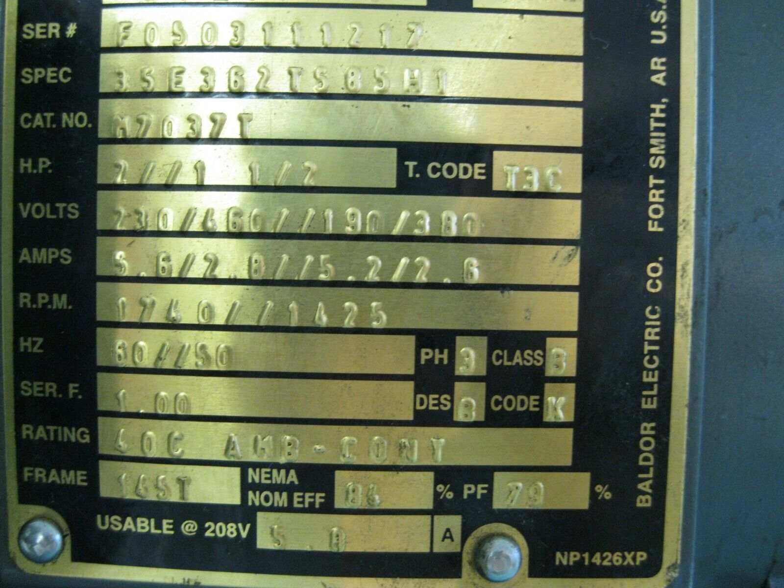 Baldor M7037T Motor 2//1.5 HP USED D14 (2985) quantity
