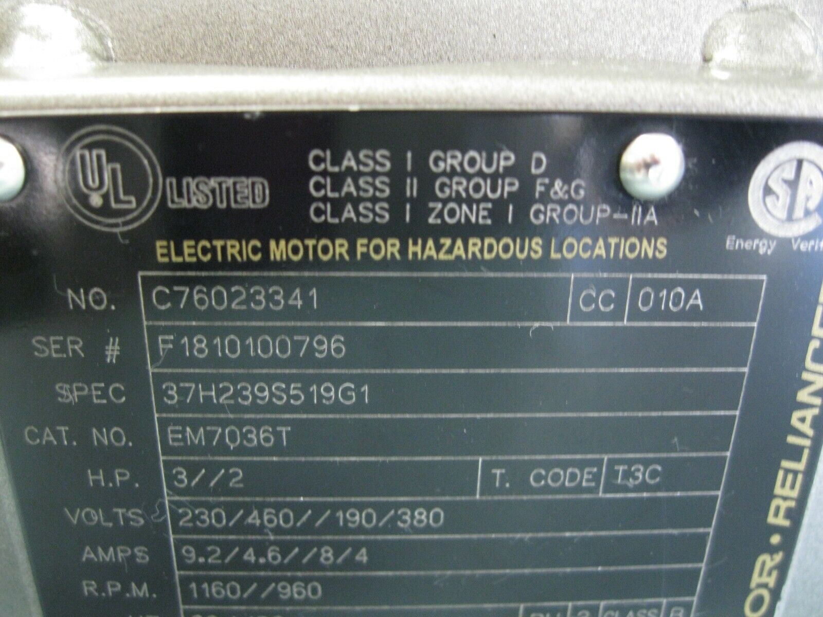 Baldor Reliance EM7036T Motor 3//2 HP NEW P7 (2949)