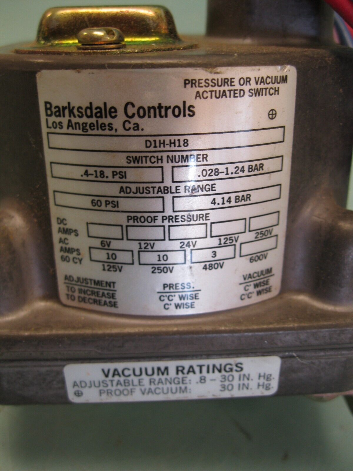 Barksdale D1H-H18 Pressure Switch NEW F18