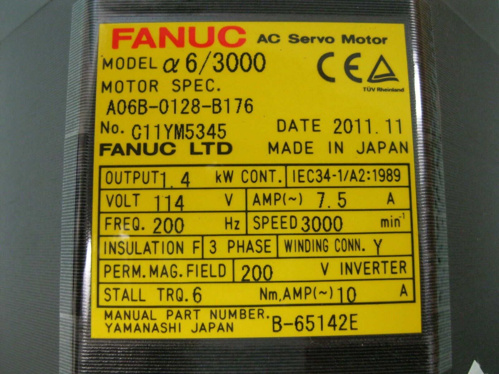 Fanuc a6/3000(A06B-0128-B176) 1.4 kW AC Servo Motor NEW D4 quantity