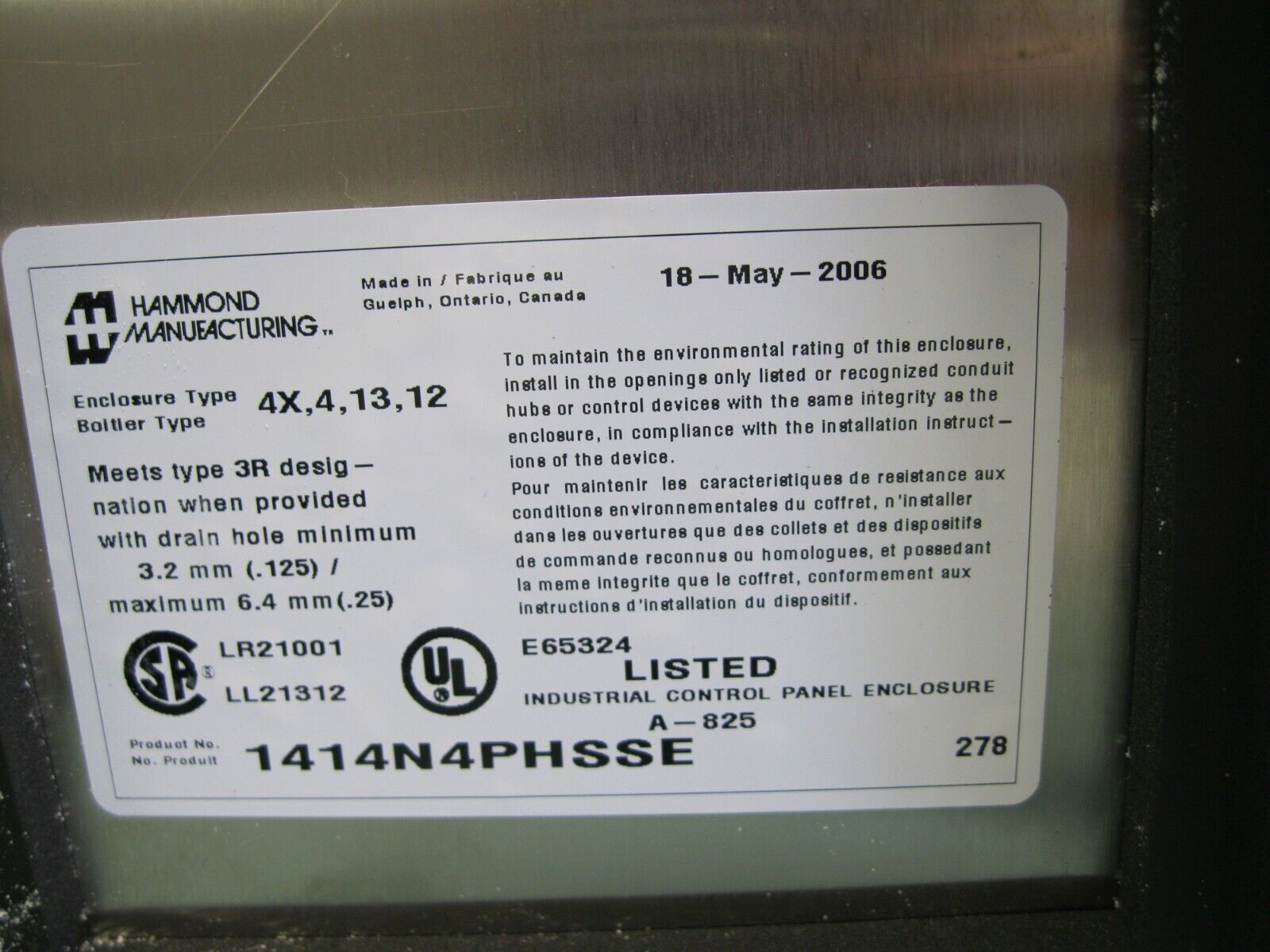 Hammond 1414N4PHSSE Enclosure B1T-A32SS Pressure Switch F8