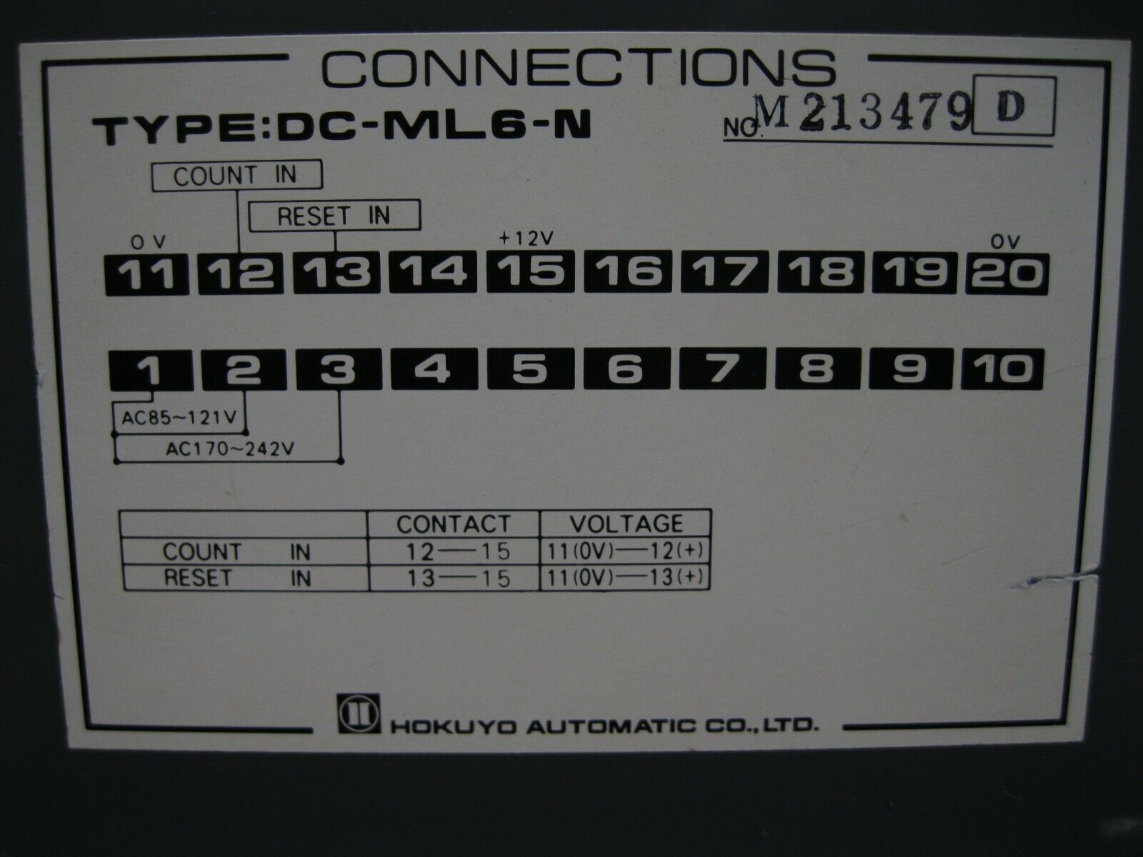 Hokuyo DC-ML6-N Auto Counter E18 (2923)
