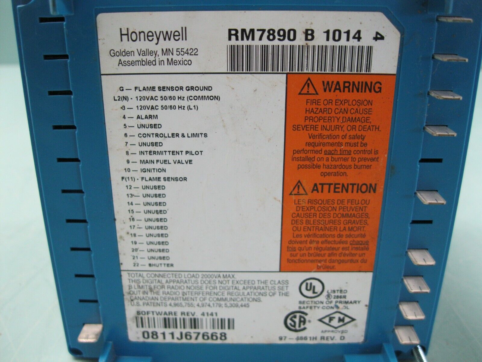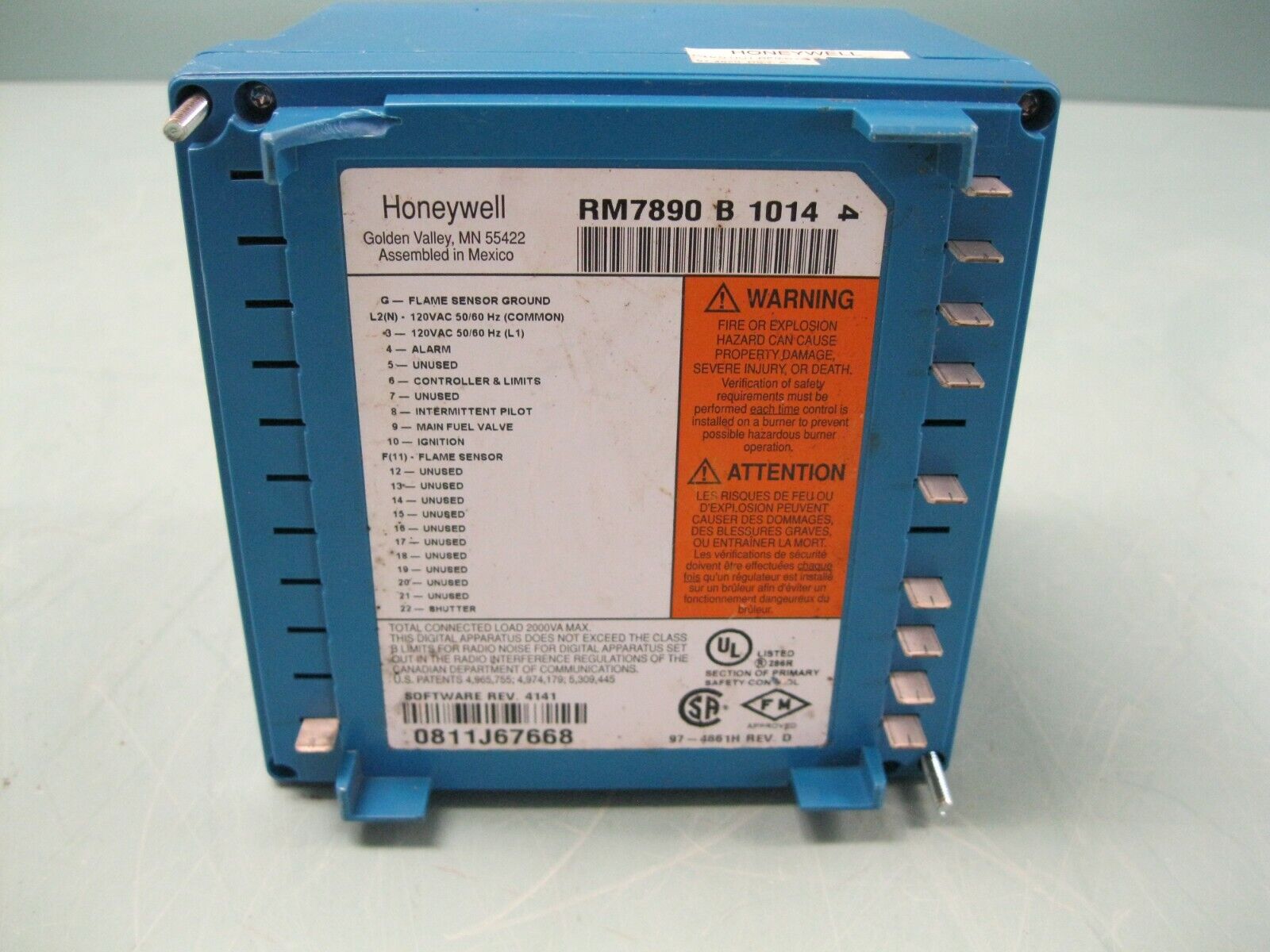 Honeywell RM7890 B 1014 Automatic Primary Burner Control H8