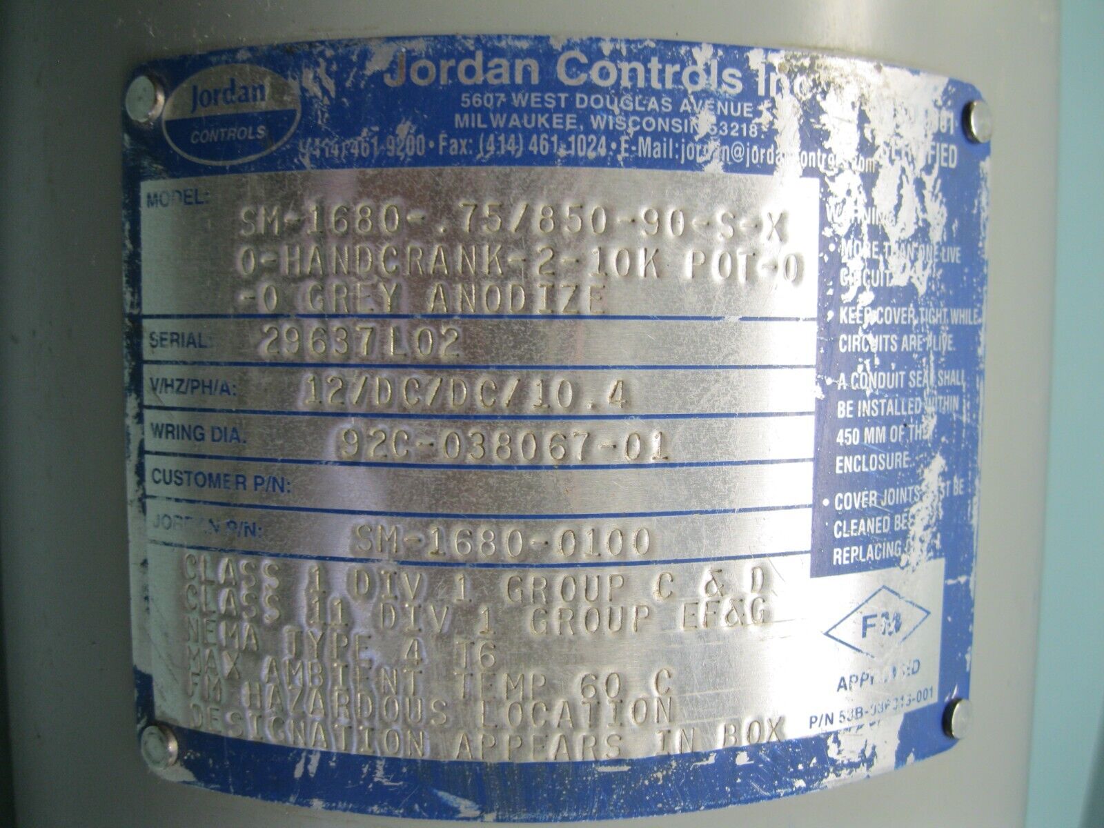 Jordan (Rotork) Controls SM-1680 Rotary Actuator NEW R10