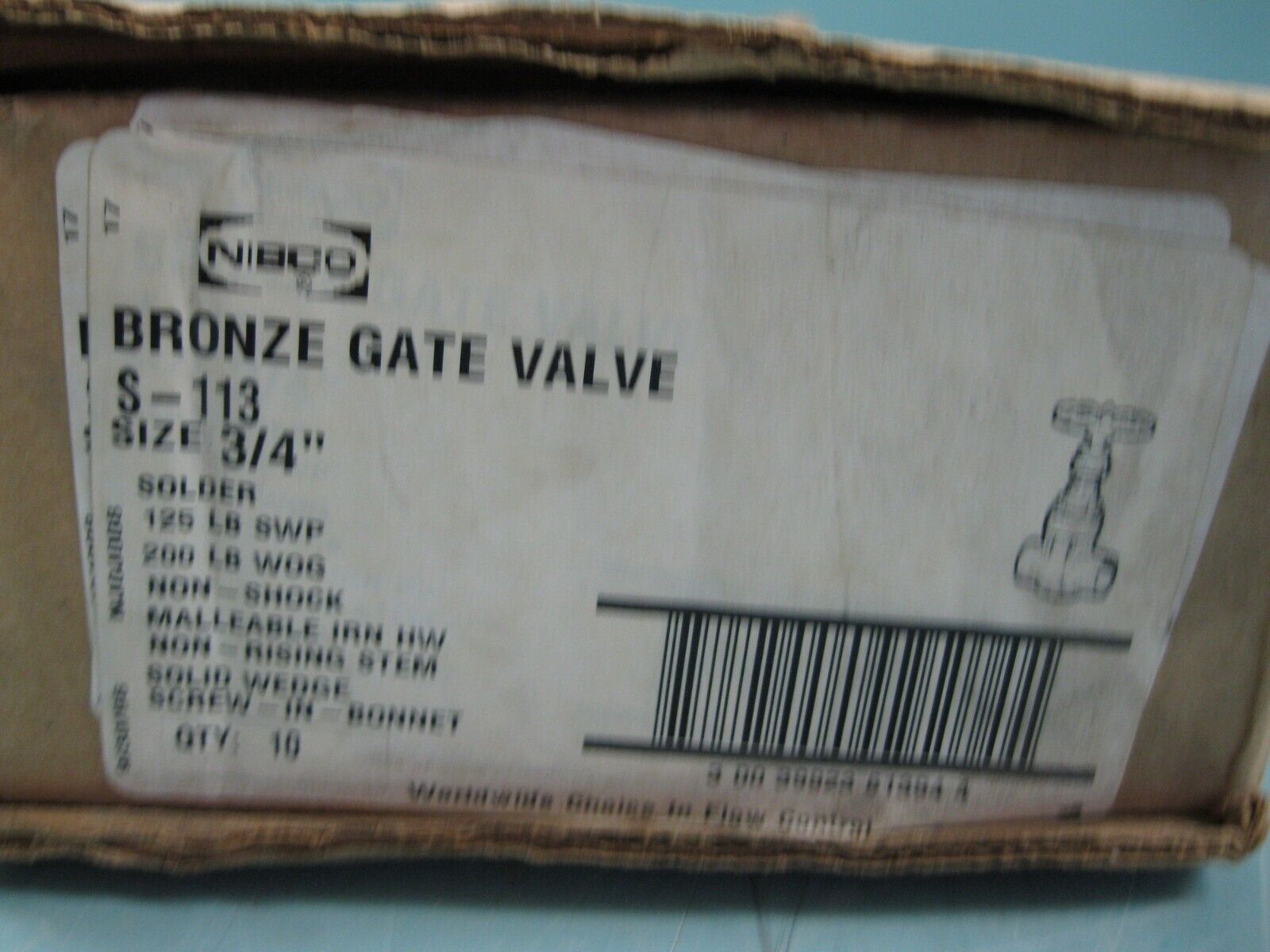 Lot (10) 3/4" Nibco Solder 125# SWP S-113 Bronze Gate Valve NEW G2 (3021) quantity