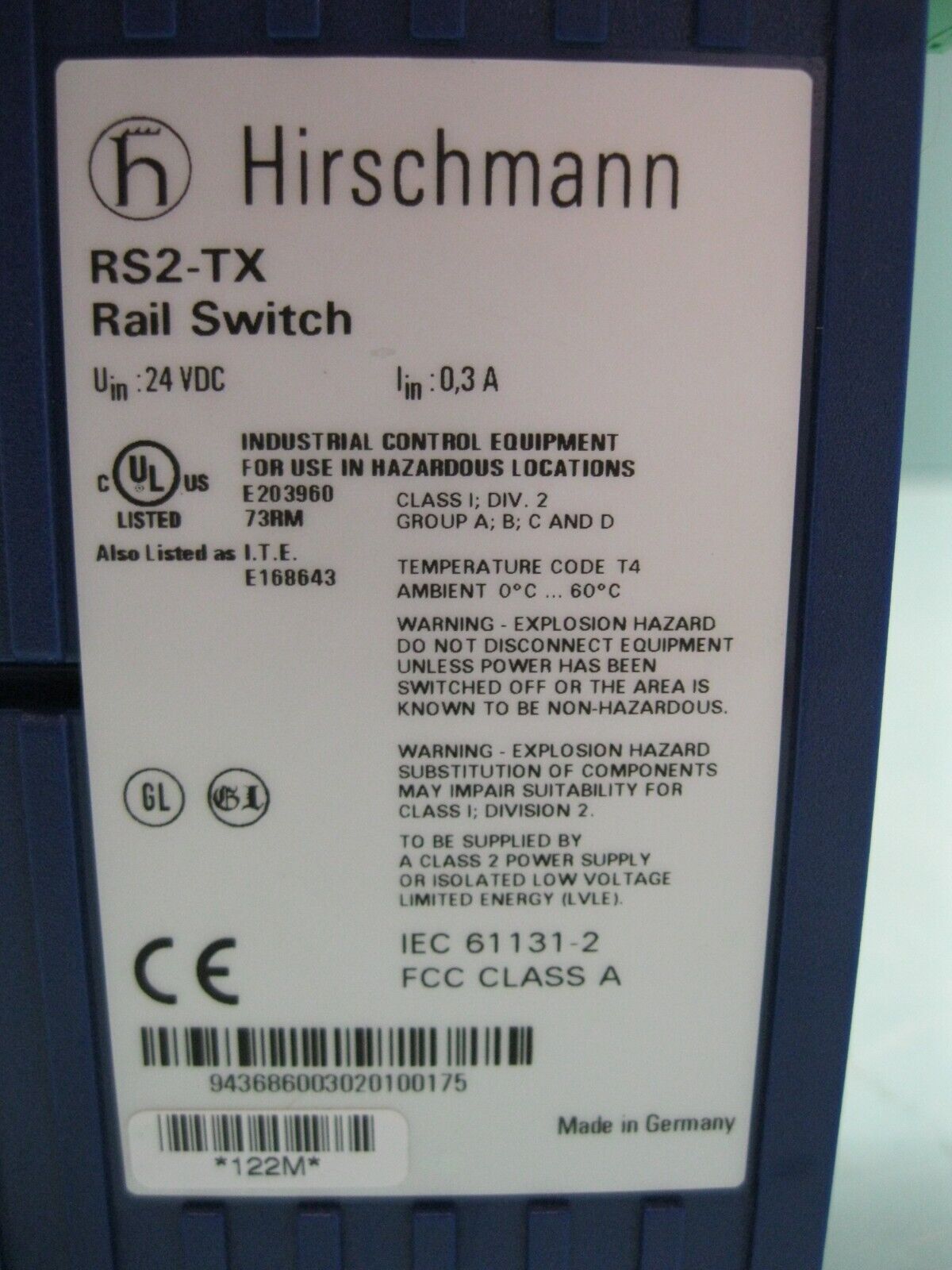 Lot (2) Hirschmann RS2-TX Ethernet Rail Switch H17