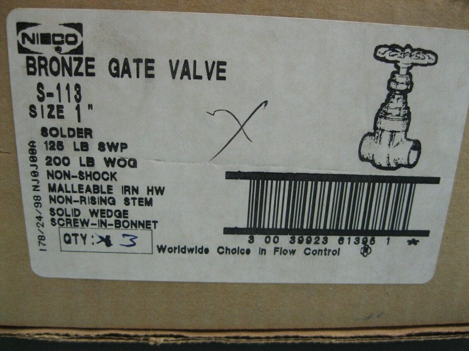 Lot (3) 1" Nibco Solder 125# SWP S-113 Bronze Gate Valve NEW F18 (3021) quantity
