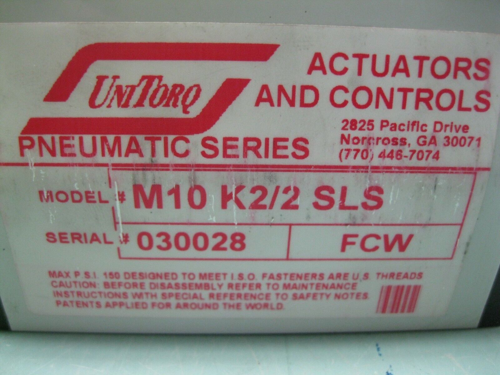 Lot (3) UniTorq M10 K2/2 SLS Pneumatic Actuator NEW A14 (2822)