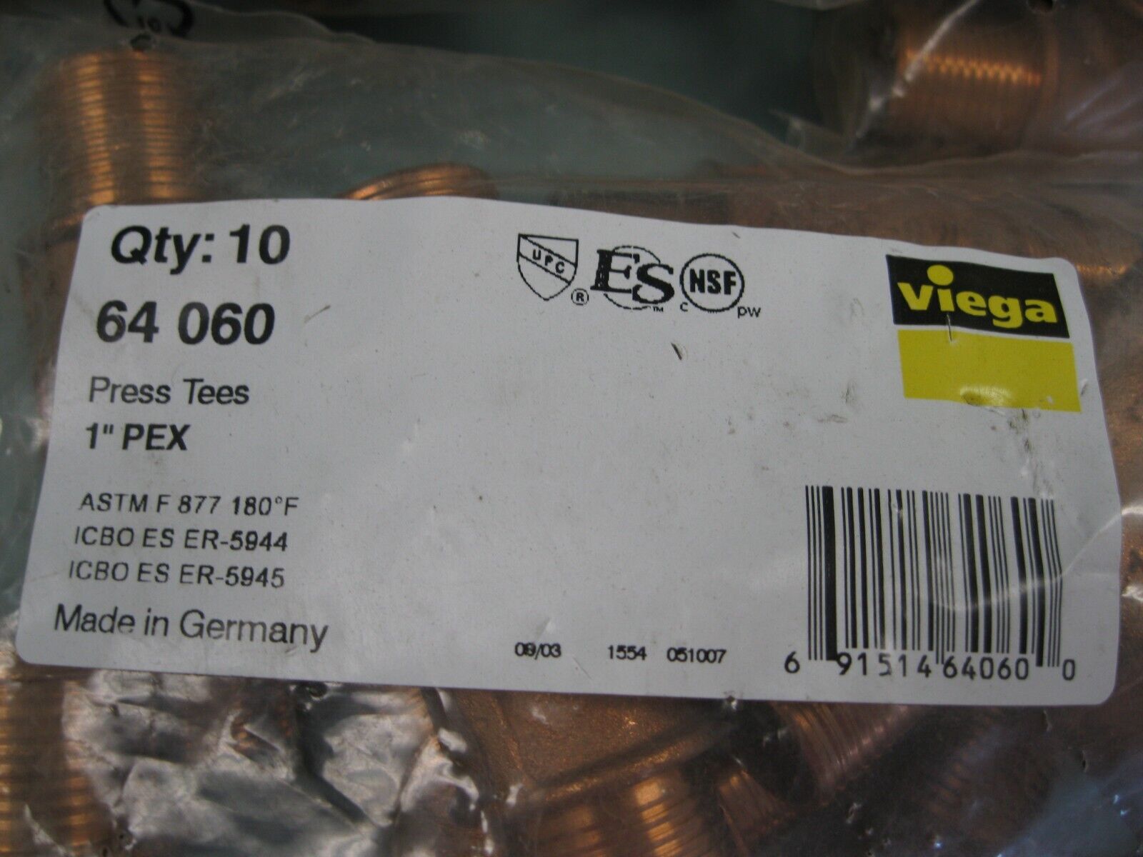 Lot (41) 1" Viega 64 060 PEX Press Tee(s) NEW H13 (2971) quantity