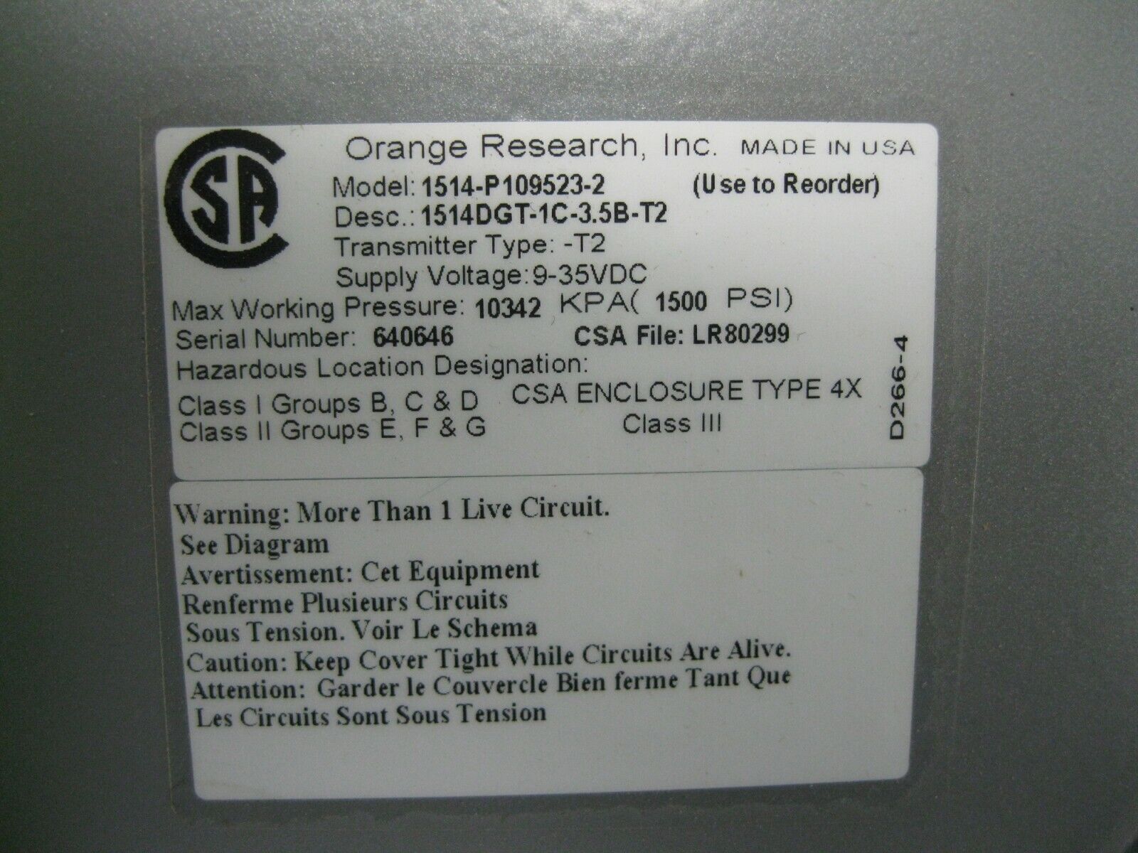 Orange Research 1514 Differential Pressure Gauge 0-30 PSI NEW E17 (2745)