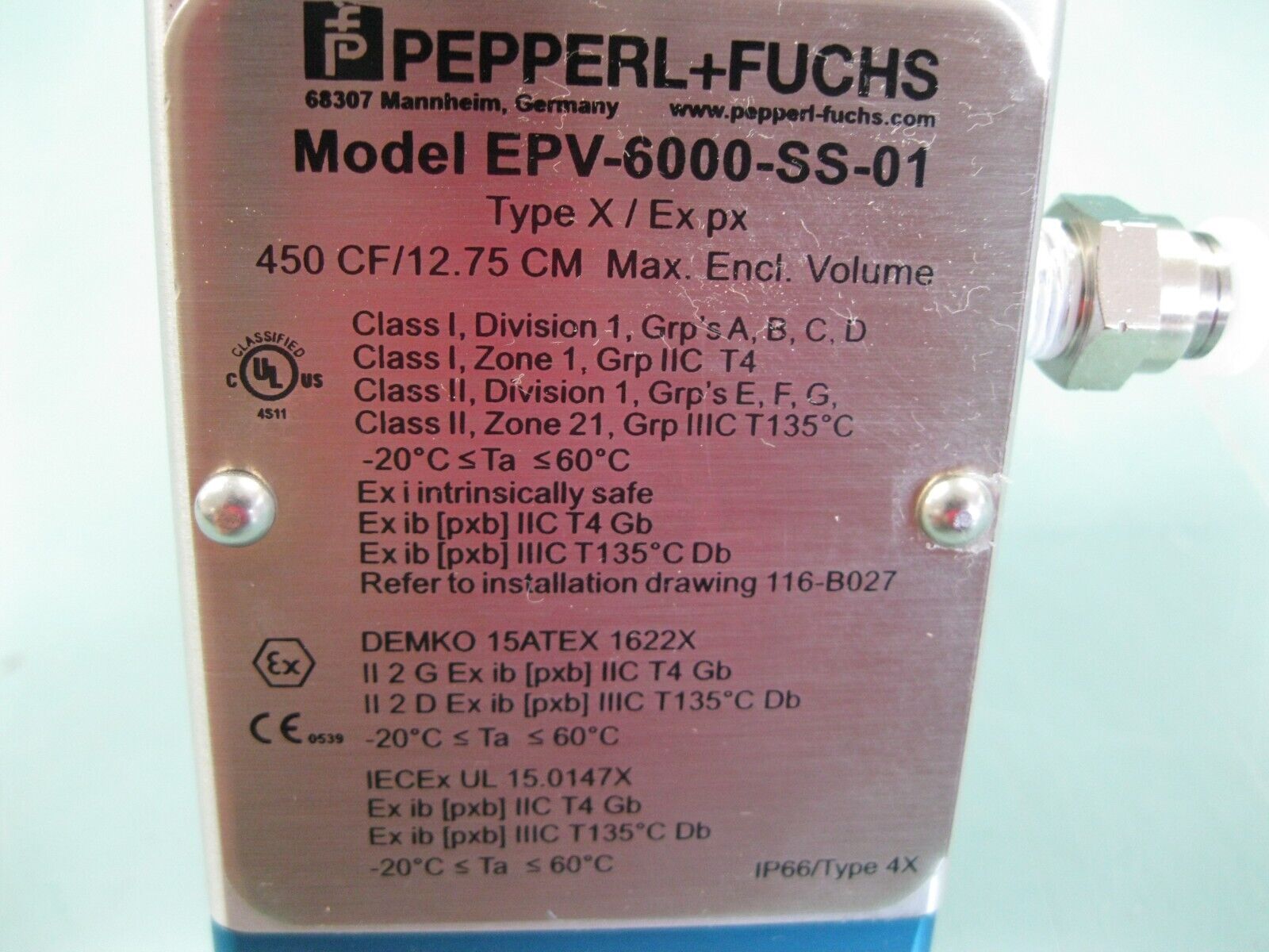 Pepperl+Fuchs EPV-6000-SS-01 Enclosure Protection Vent F18