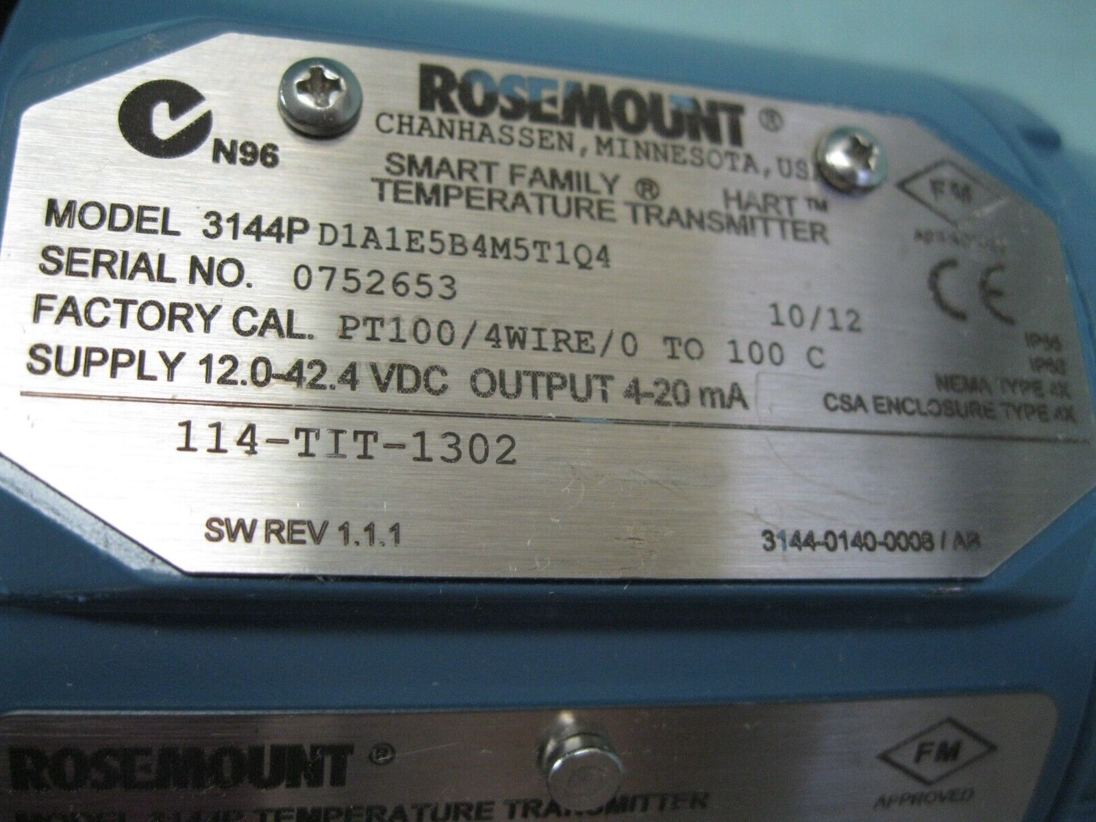 Rosemount 3144P D1A1NAM5C4Q4XA Smart Hart Temperature Transmitter w/ Sensor E4