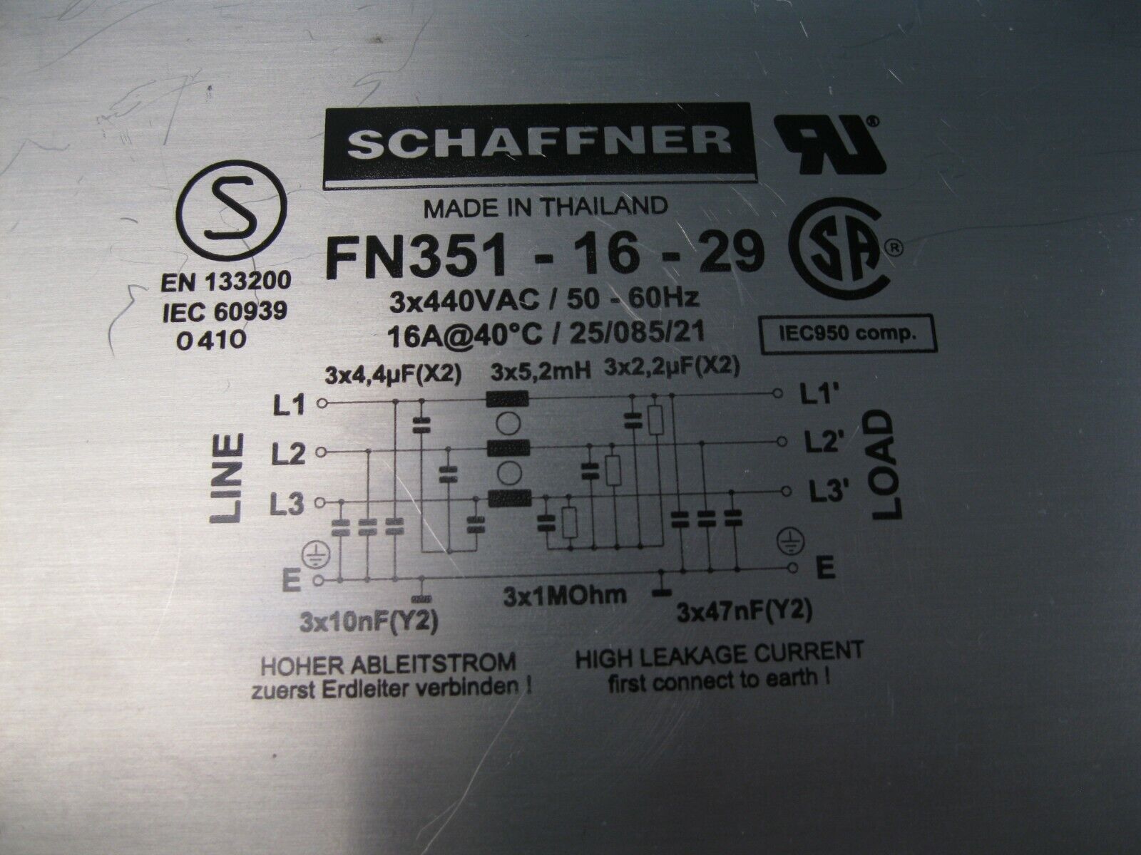 Schaffner FN351-16-29 Power Line Filter Chassis H13 (2941)