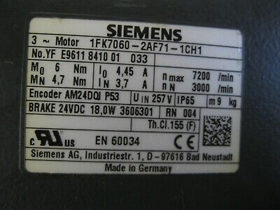 Siemens 1FK7060-2AF71-1CH1 Servo Motor B20 (2999) quantity