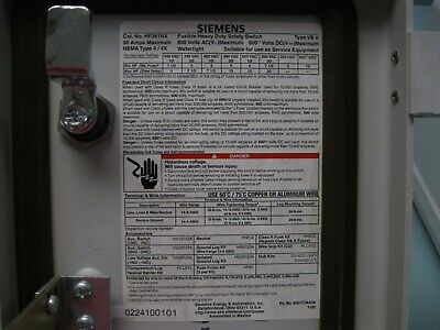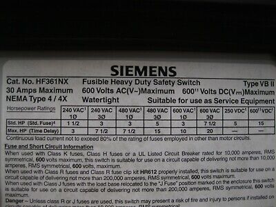 Siemens HF361NX Heavy Duty Safety Switch 30 A 600 V NEW F2 (2991) quantity